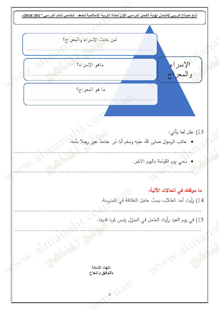 معلومات الملف: الصف الخامس, الفصل الأول, تربية اسلامية, 2017-2018, النموذج الرسمي التدريبي لامتحان نهاية الفصل الاول | |||