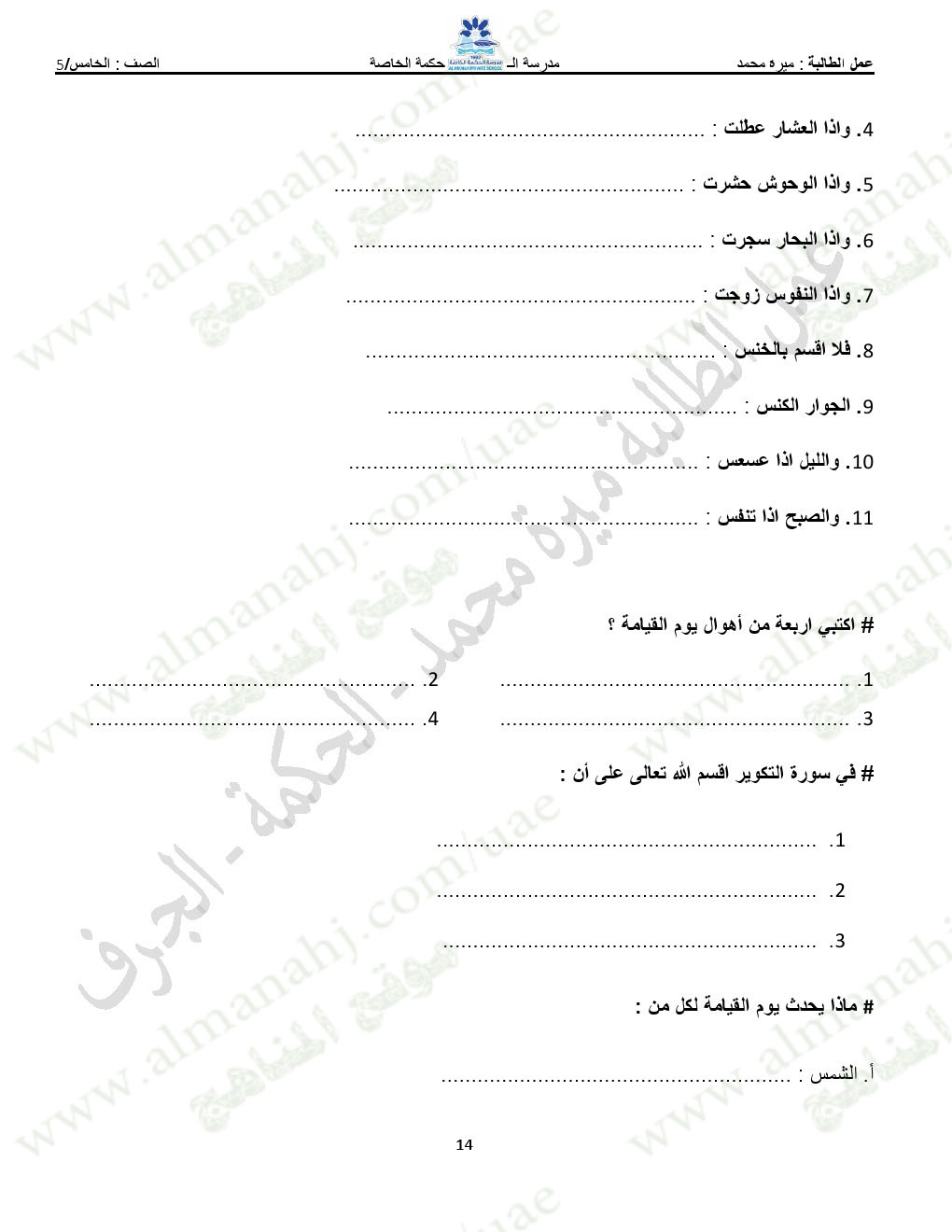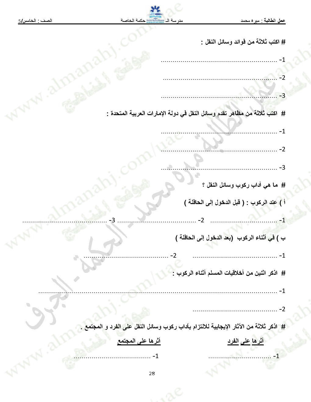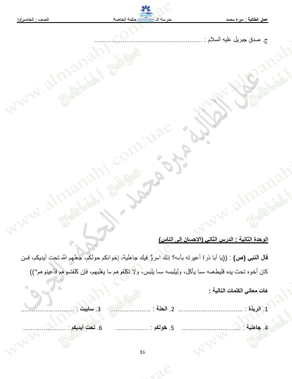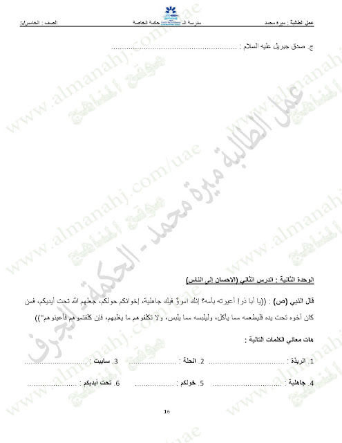 تنويه: المناهج الإماراتية هو موقع مجاني وغير رسمي ولا يتطلب اشتراك لتحميل الملفات، لذلك يرجى عدم دفع أي مبلغ أو الاشتراك من أجل تحميل الملفات. | |
