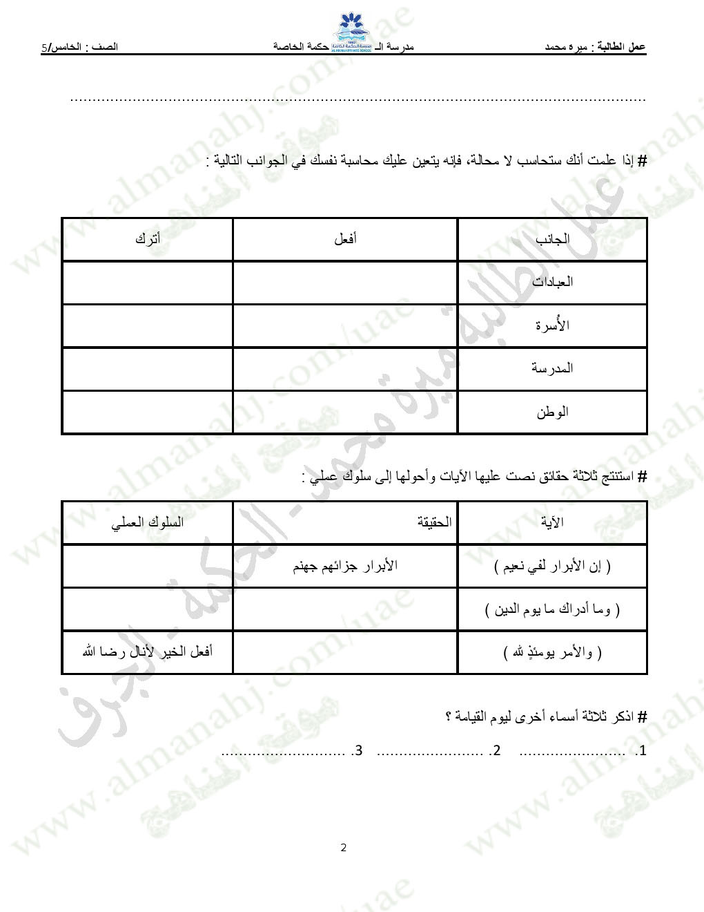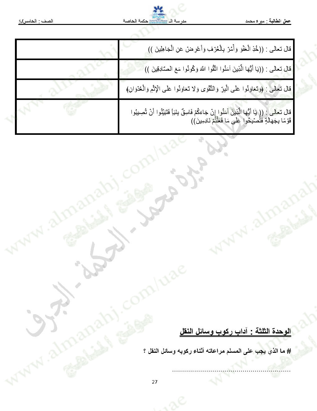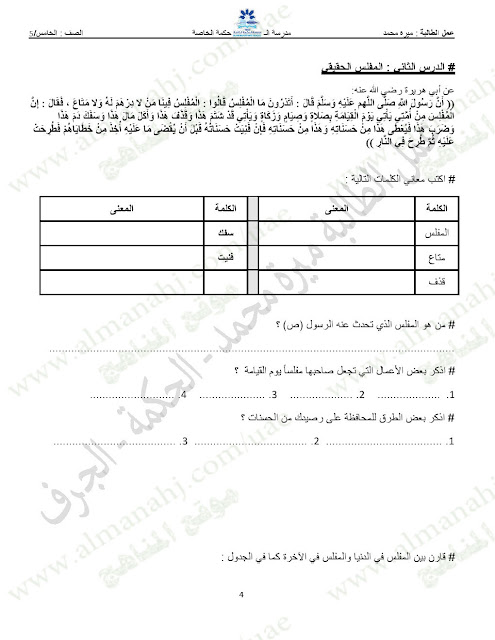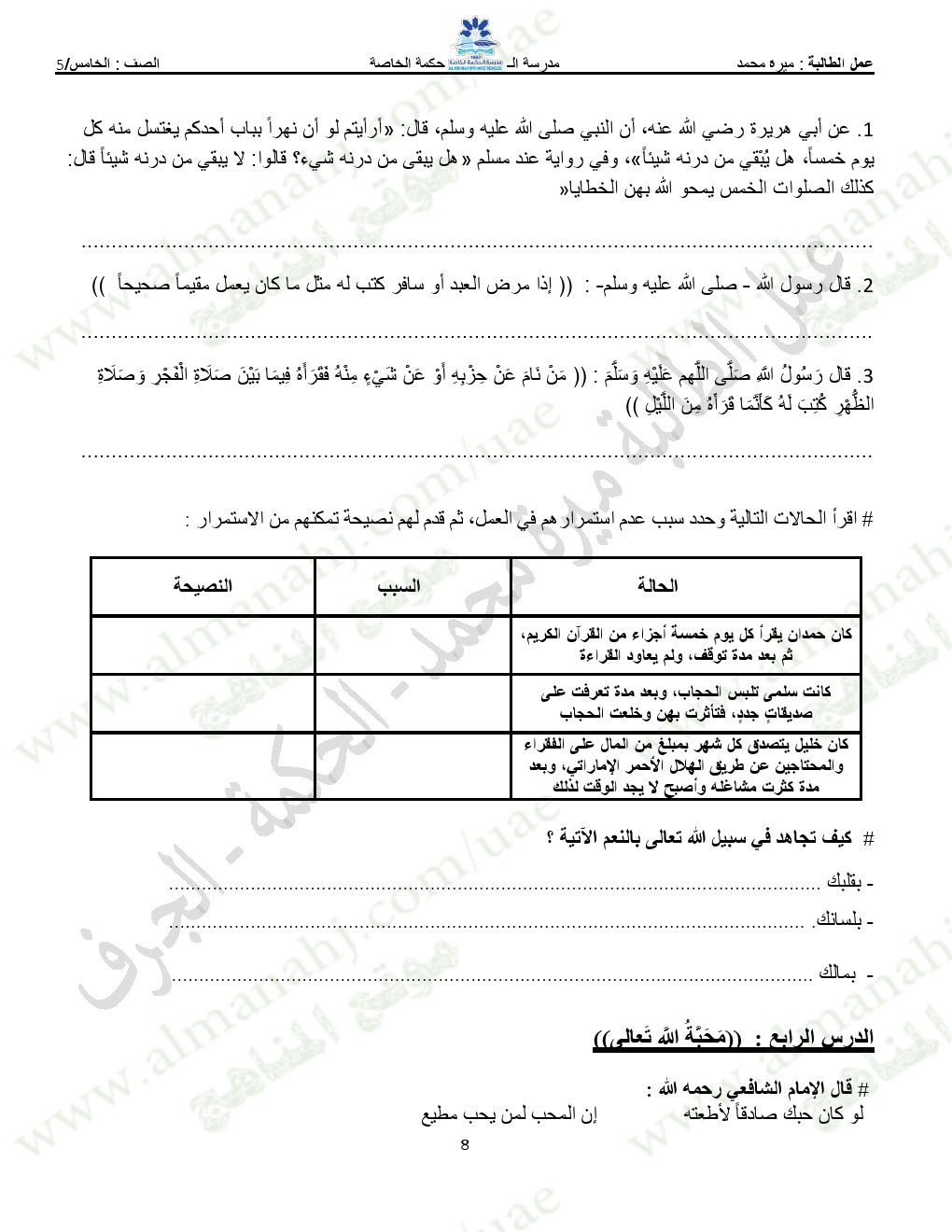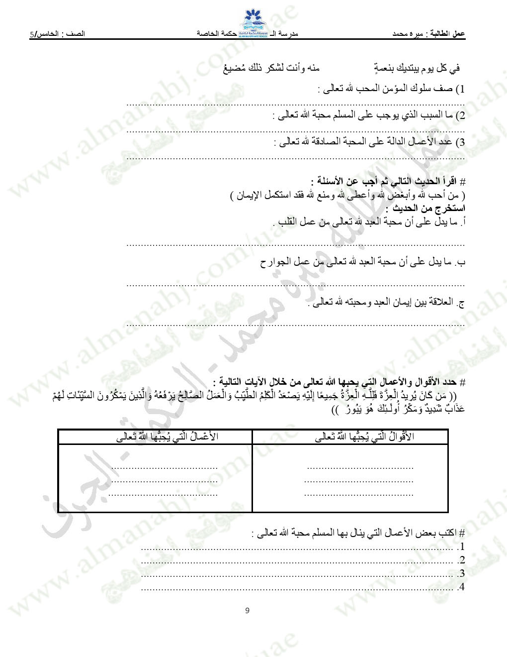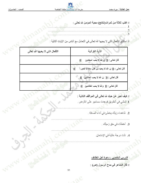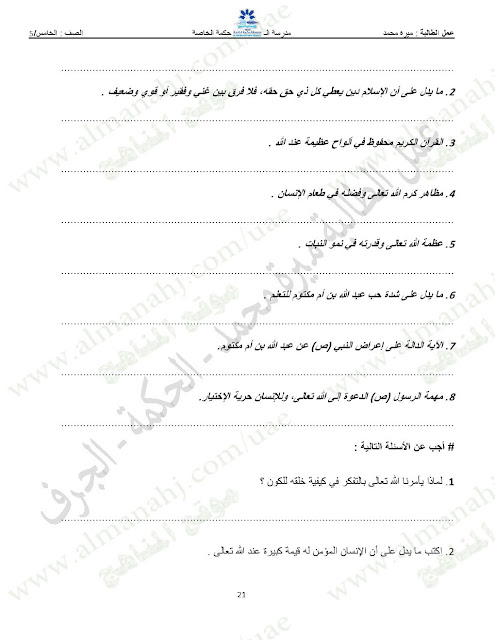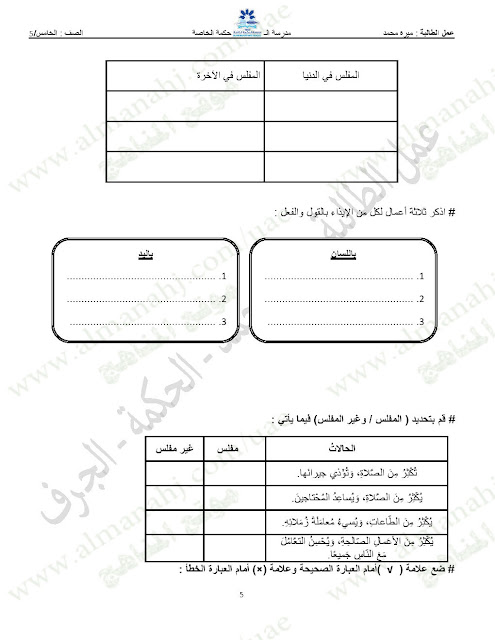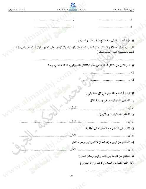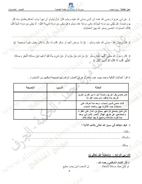 المادة: تربية اسلامية | ||