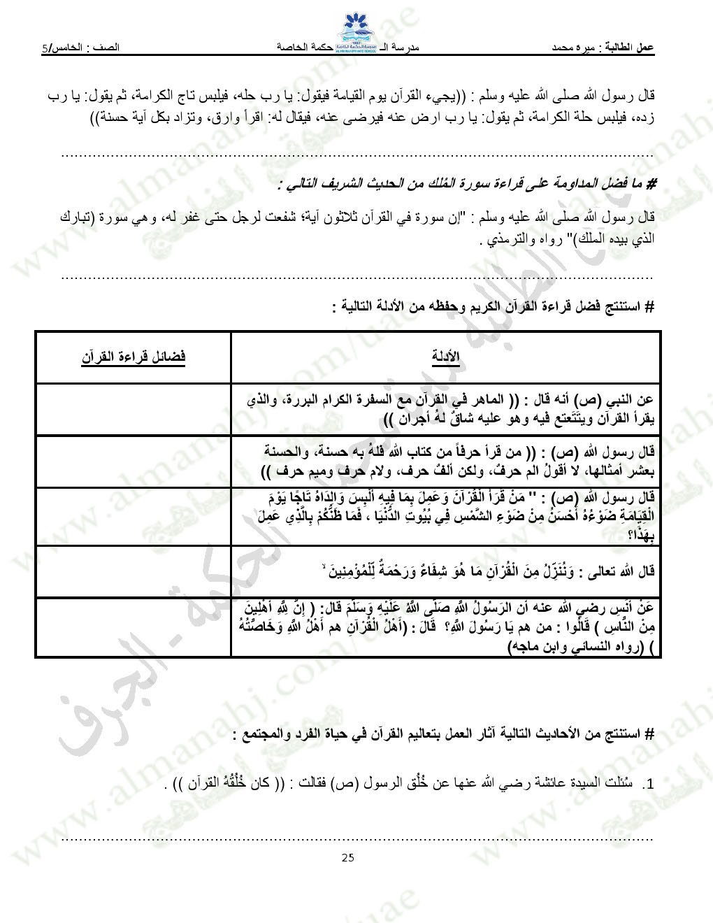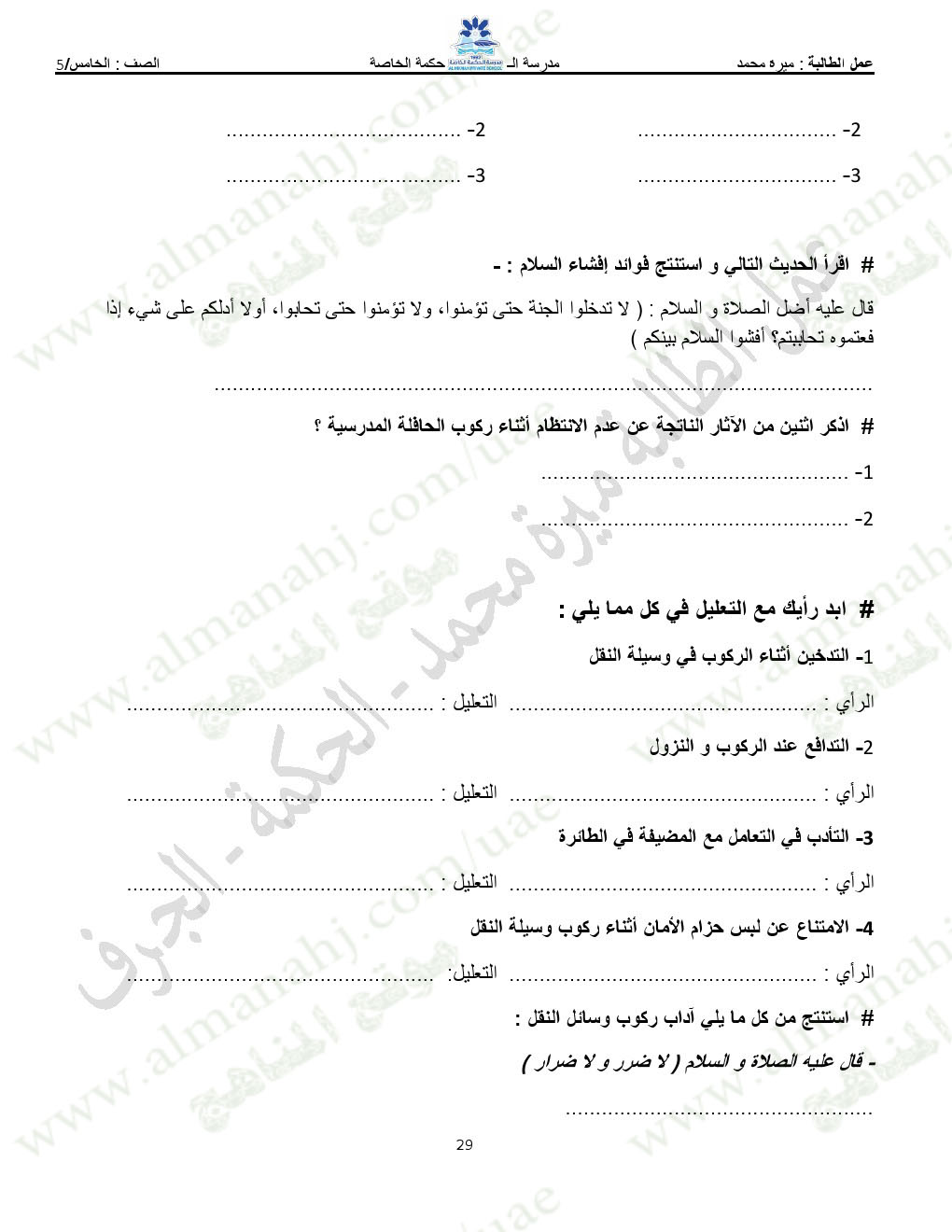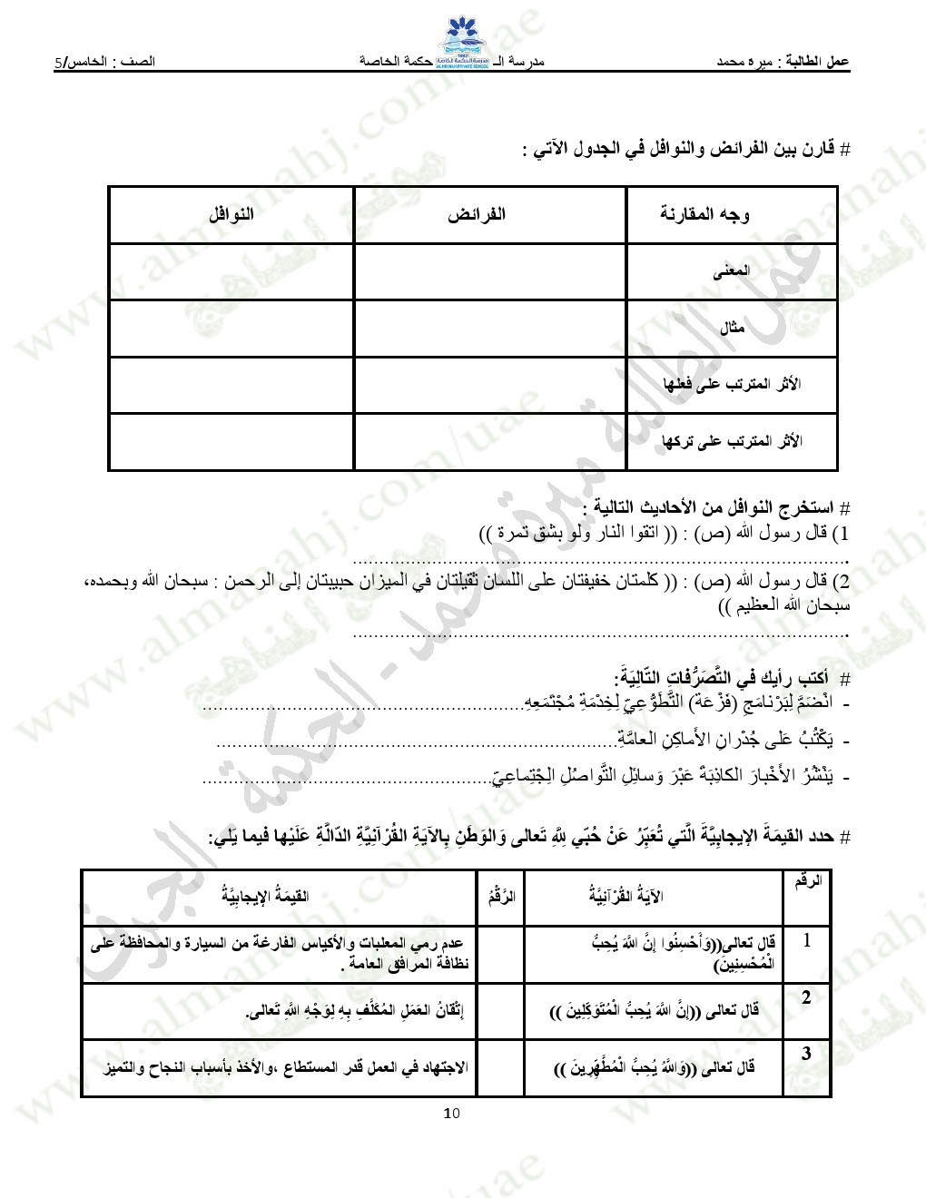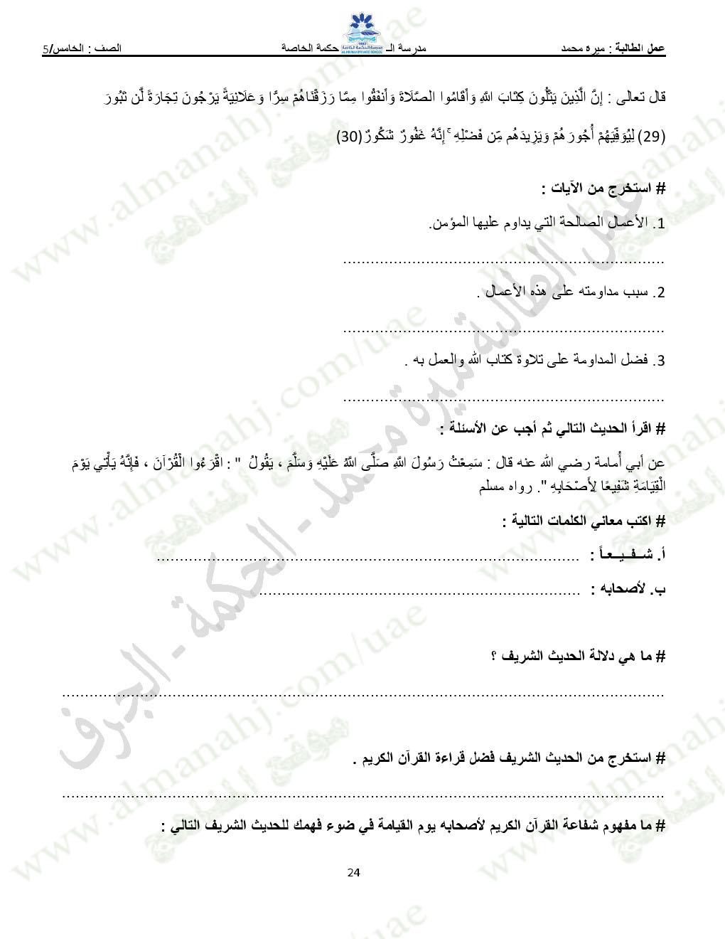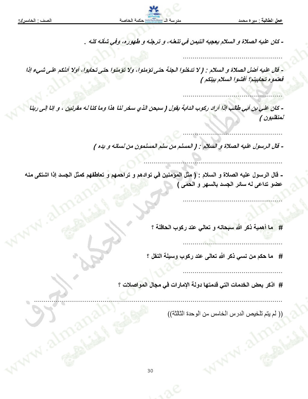 المادة: تربية اسلامية | ||