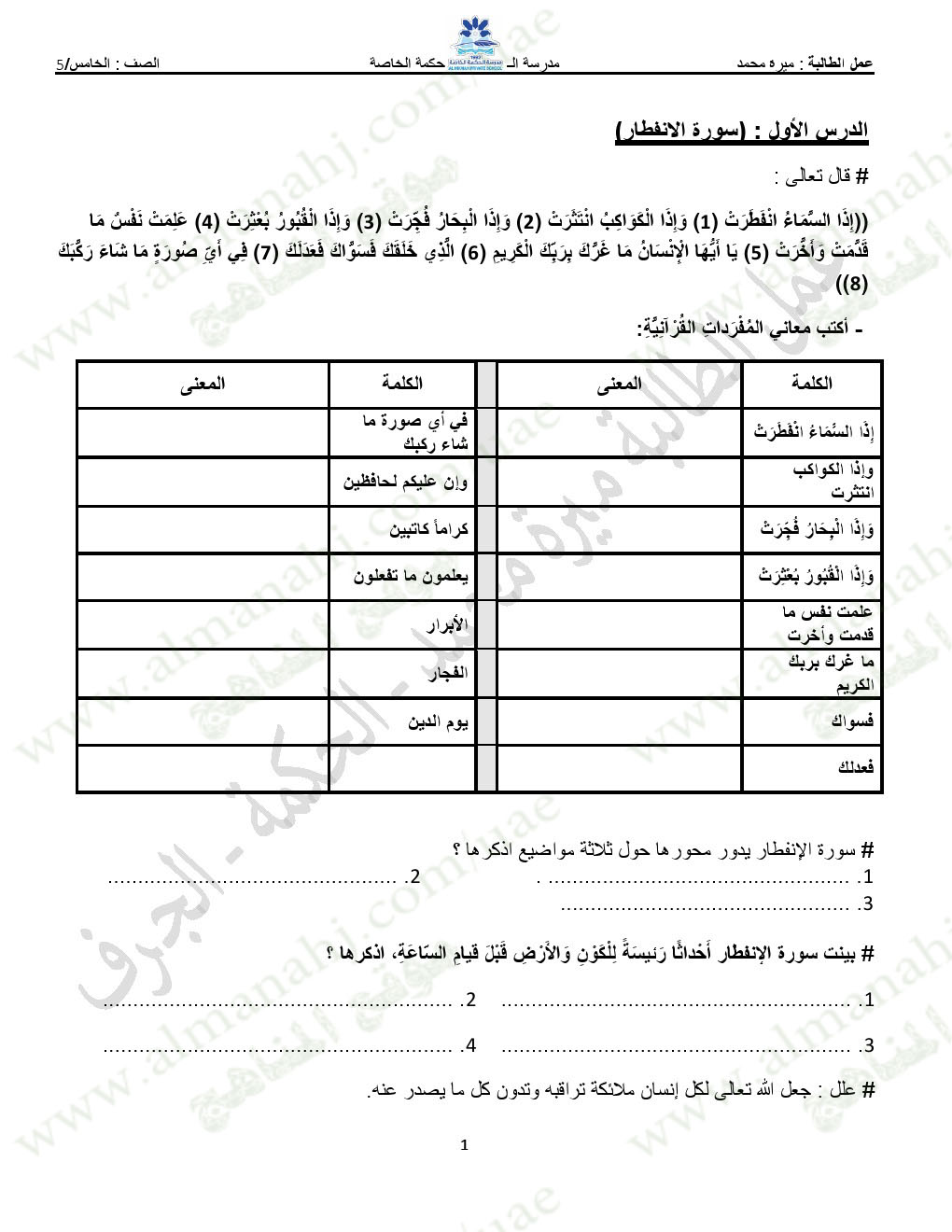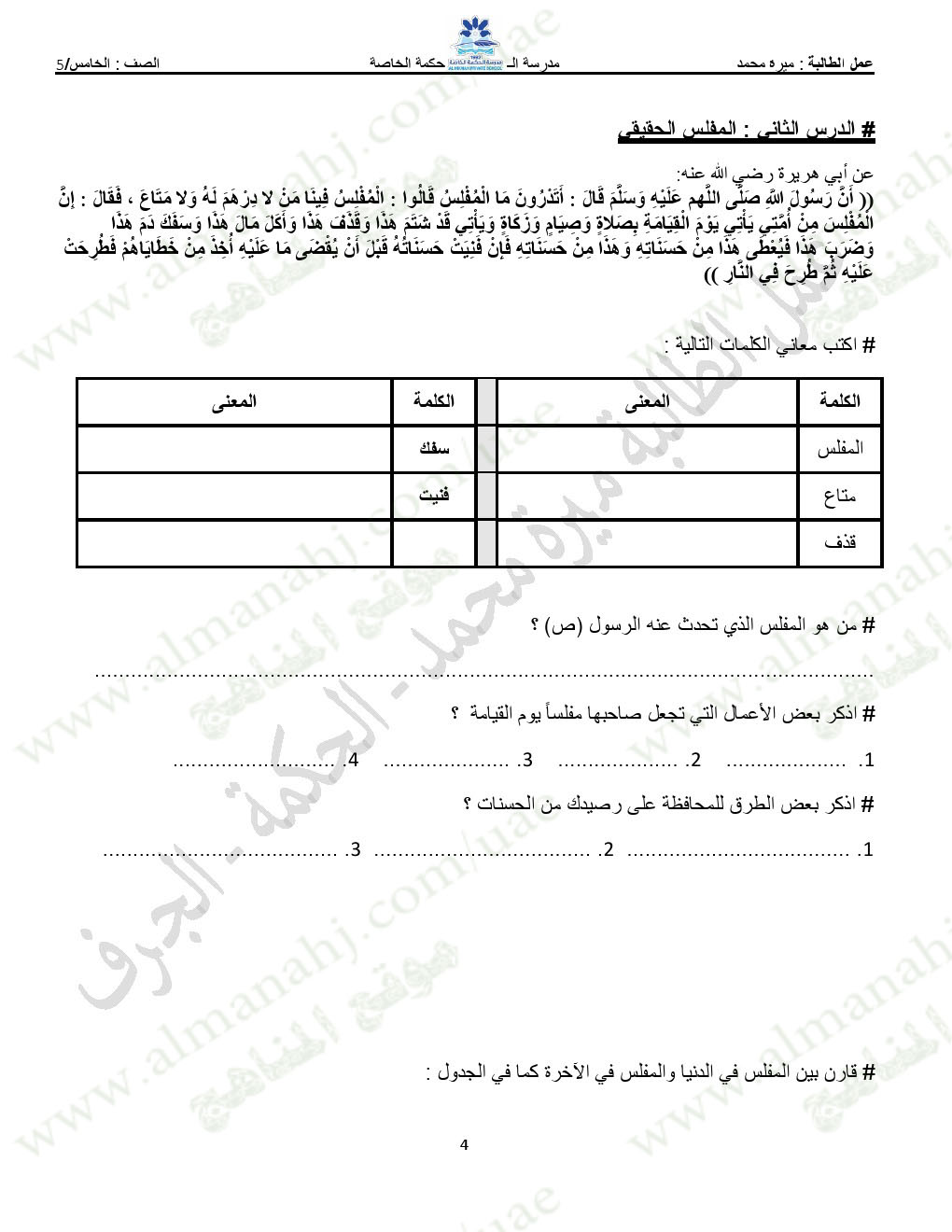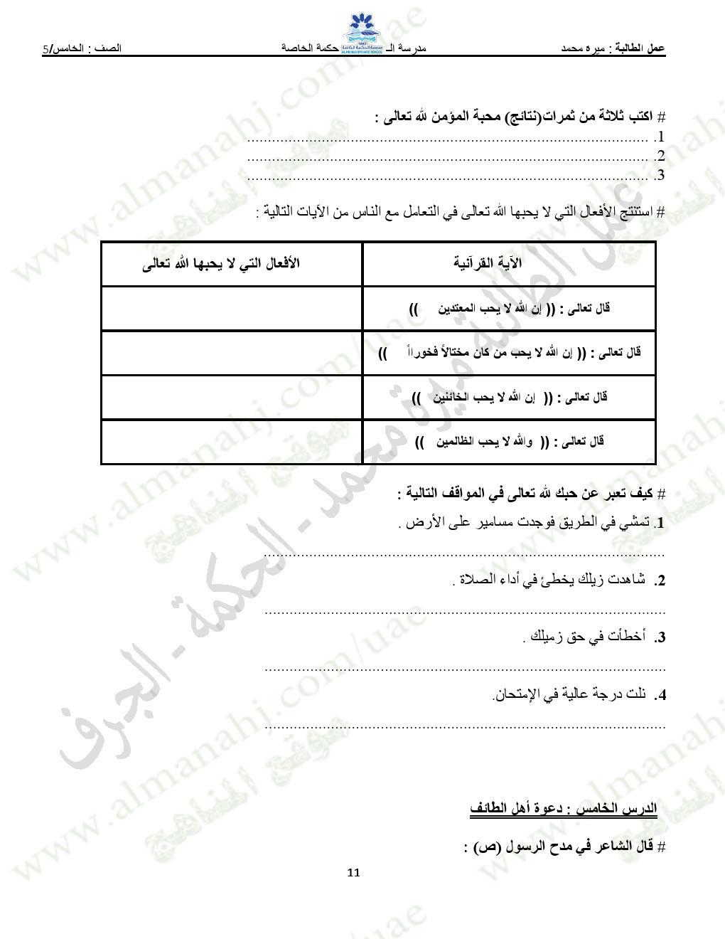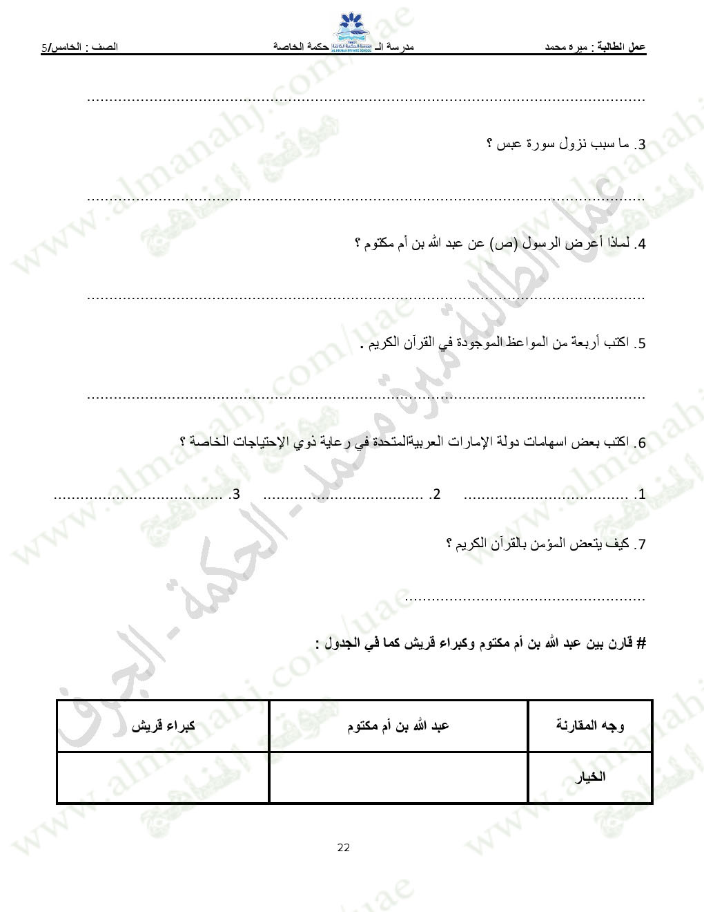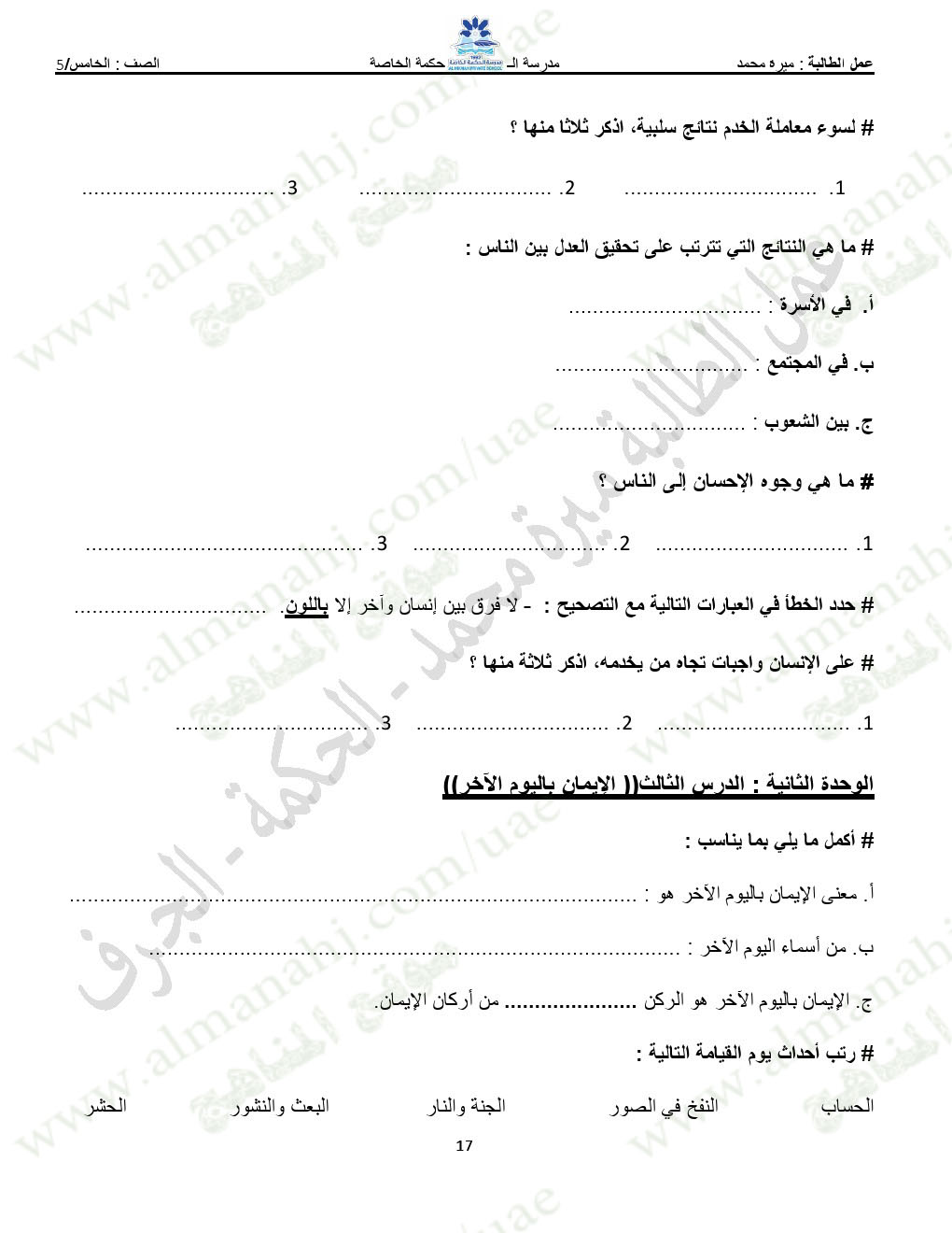 المادة: تربية اسلامية | ||
