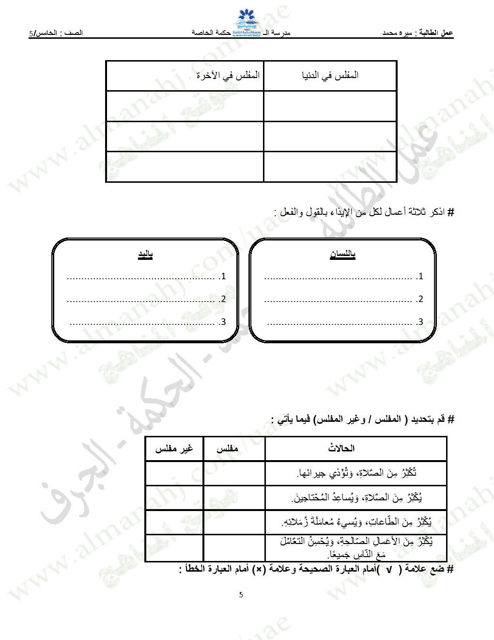 الصف الخامس | ||