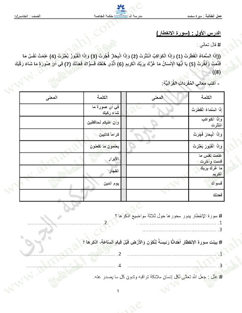 أحدث ملفات الصف الخامس, الإمارات, الفصل الأول |