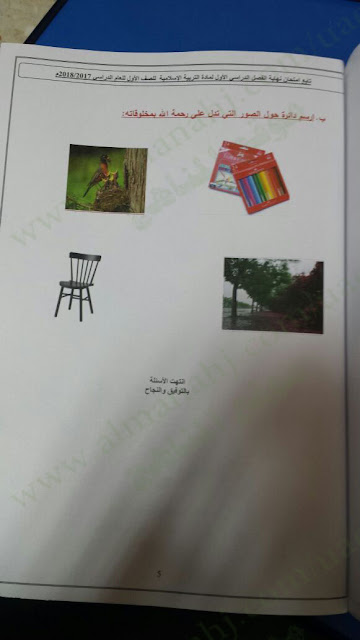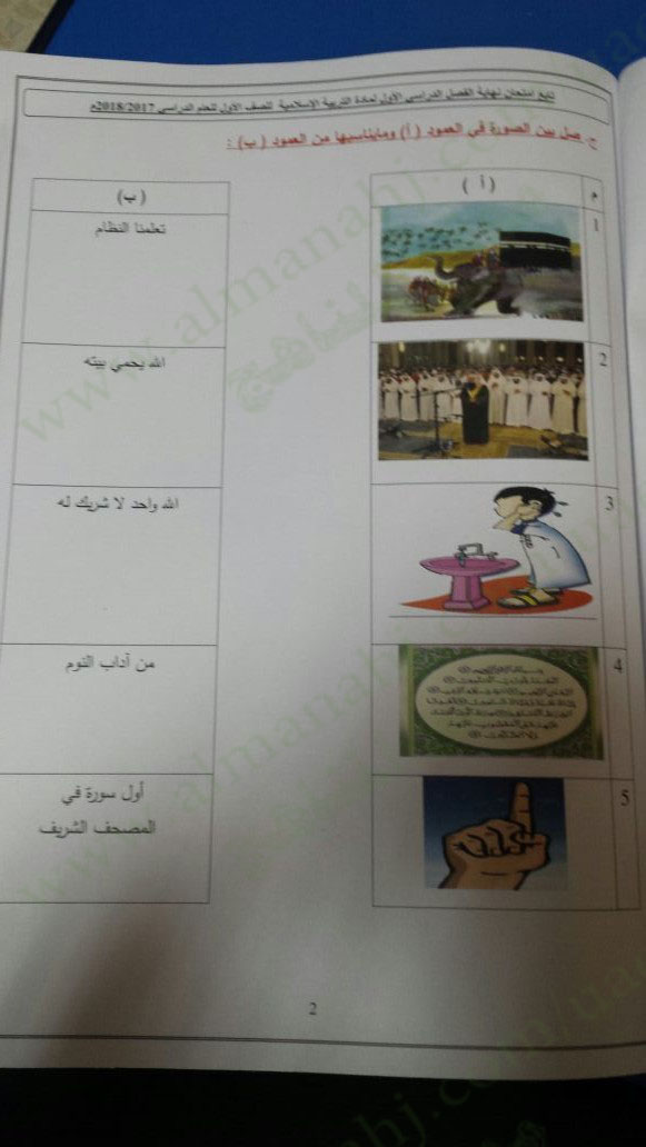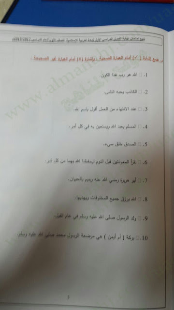 الصف الأول, الفصل الأول, تربية اسلامية, 2017-2018, الأسئلة الرسمية لامتحان نهاية الفصل الاول