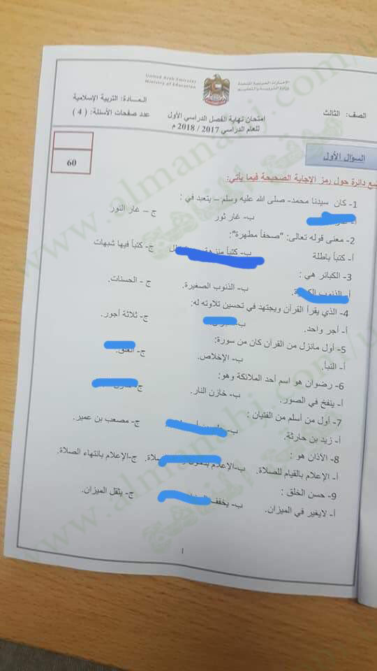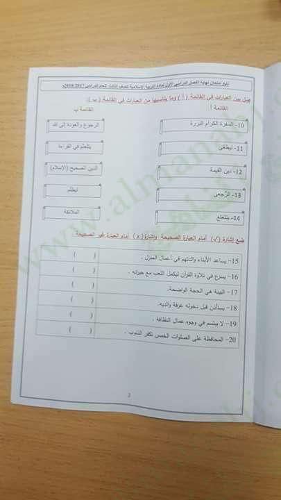 معلومات الملف: الصف الثالث, الفصل الأول, تربية اسلامية, 2017-2018, الأسئلة الرسمية لامتحان نهاية الفصل الأول | |||