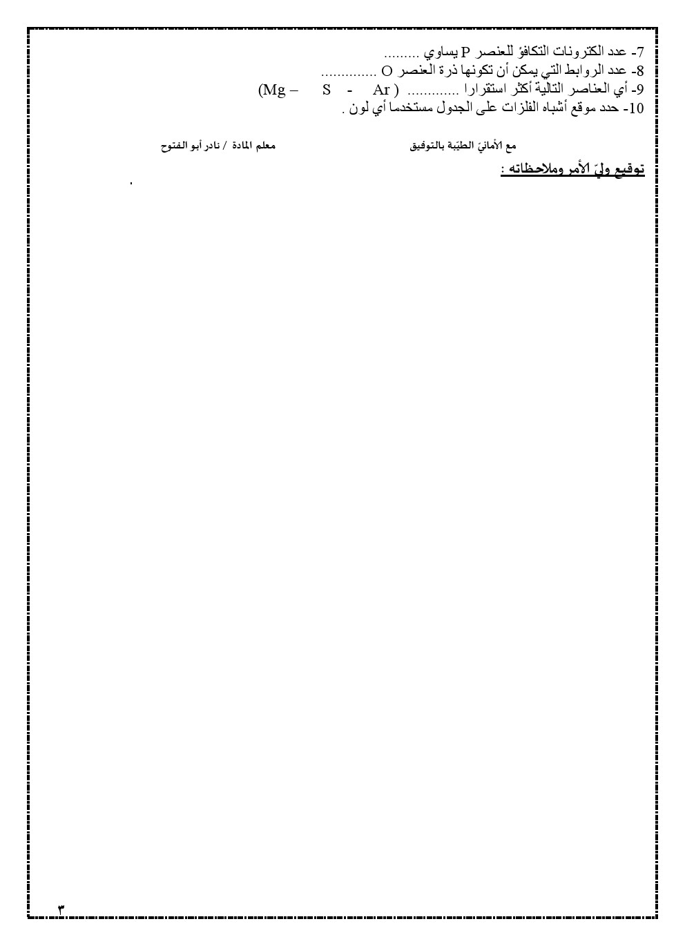 السابق: ورقة عمل الروابط الأيونية والفلزية | الملف الحالي: 3358 | التالي: نموذج إجابة أسئلة اختبار التقويم التكويني الأول من مدرسة ينابيع المعرفة | |