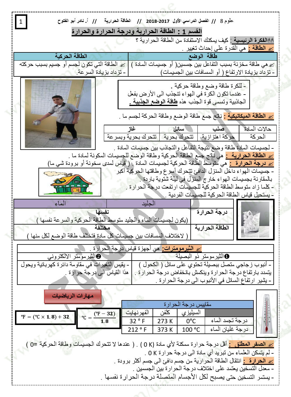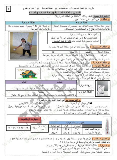 الصف الثامن, الفصل الأول, علوم, 2017-2018, ملخص الطاقة الحرارية للتحميل اتبع الرابط التالي: http://aefiles.website/do.php?id=889">http://aefiles.website/do.php?id=889