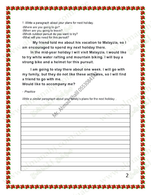 معلومات الملف: الفصل الأول, الفصل الأول, لغة انكليزية, 2017-2018,نموذجكتابة في الوحدة الرابعة | ||