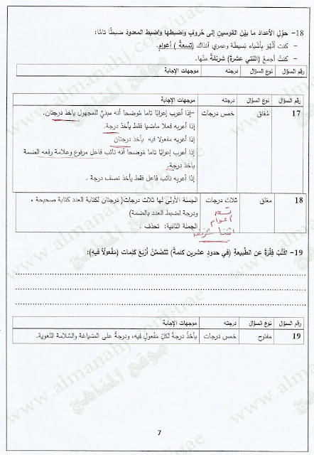 1. كل ما يخص امتحان الاعادة (تمكين) للصف السابع