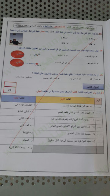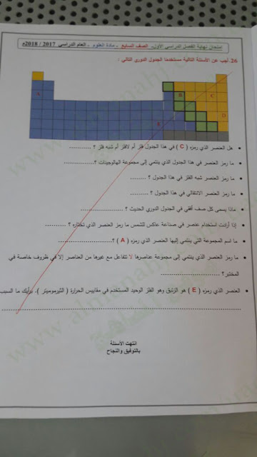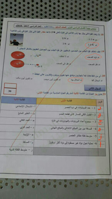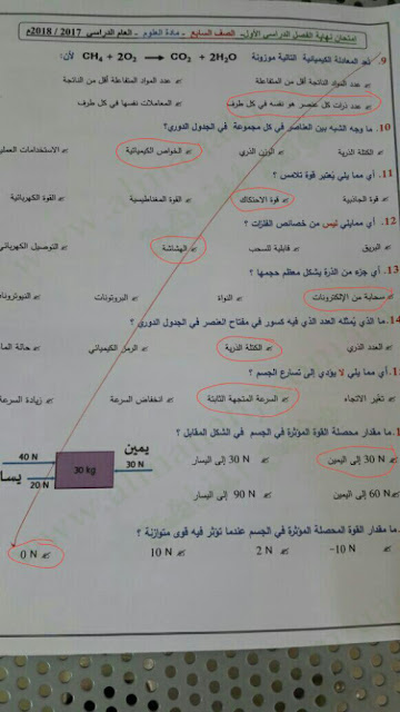 معلومات الملف: الصف السابع, الفصل الأول, علوم,2017-2018, الأسئلة الوزارية لامتحان نهاية الفصل الأول | |||