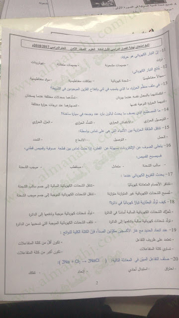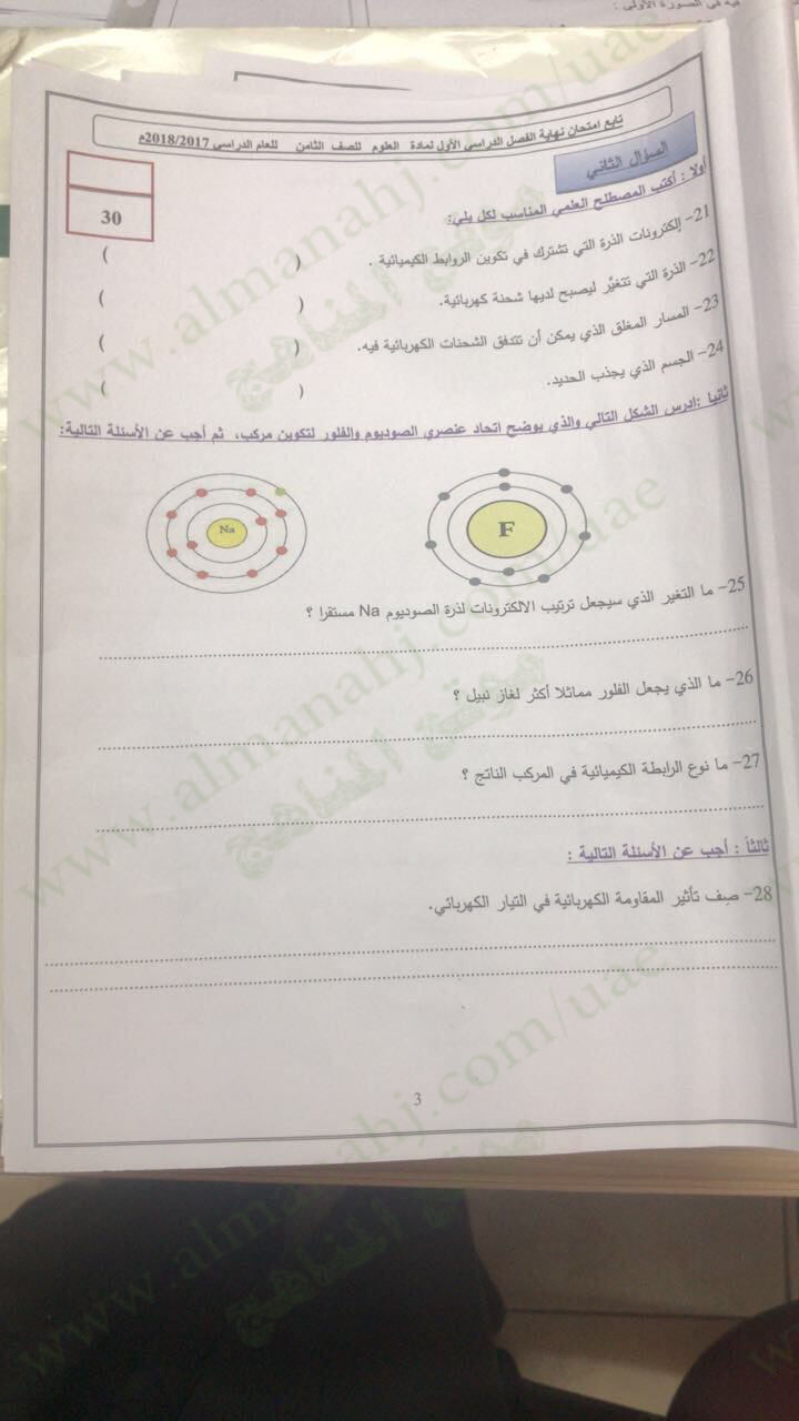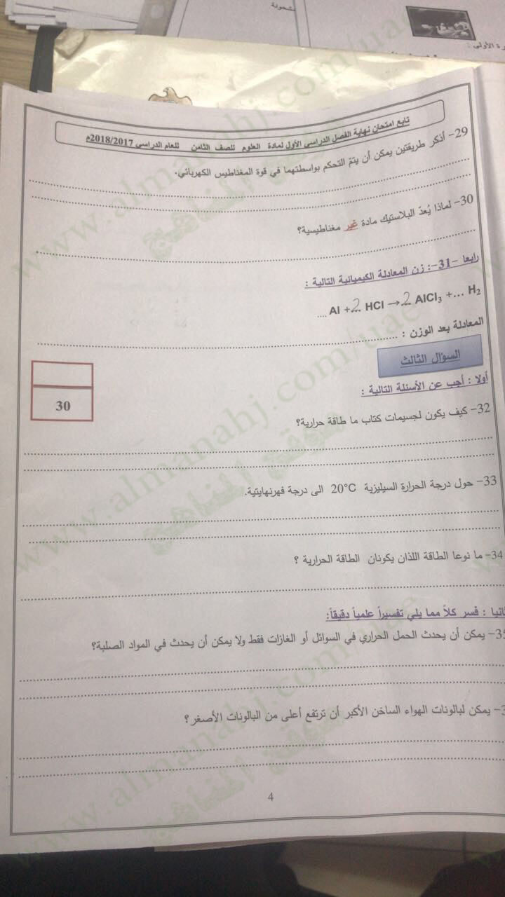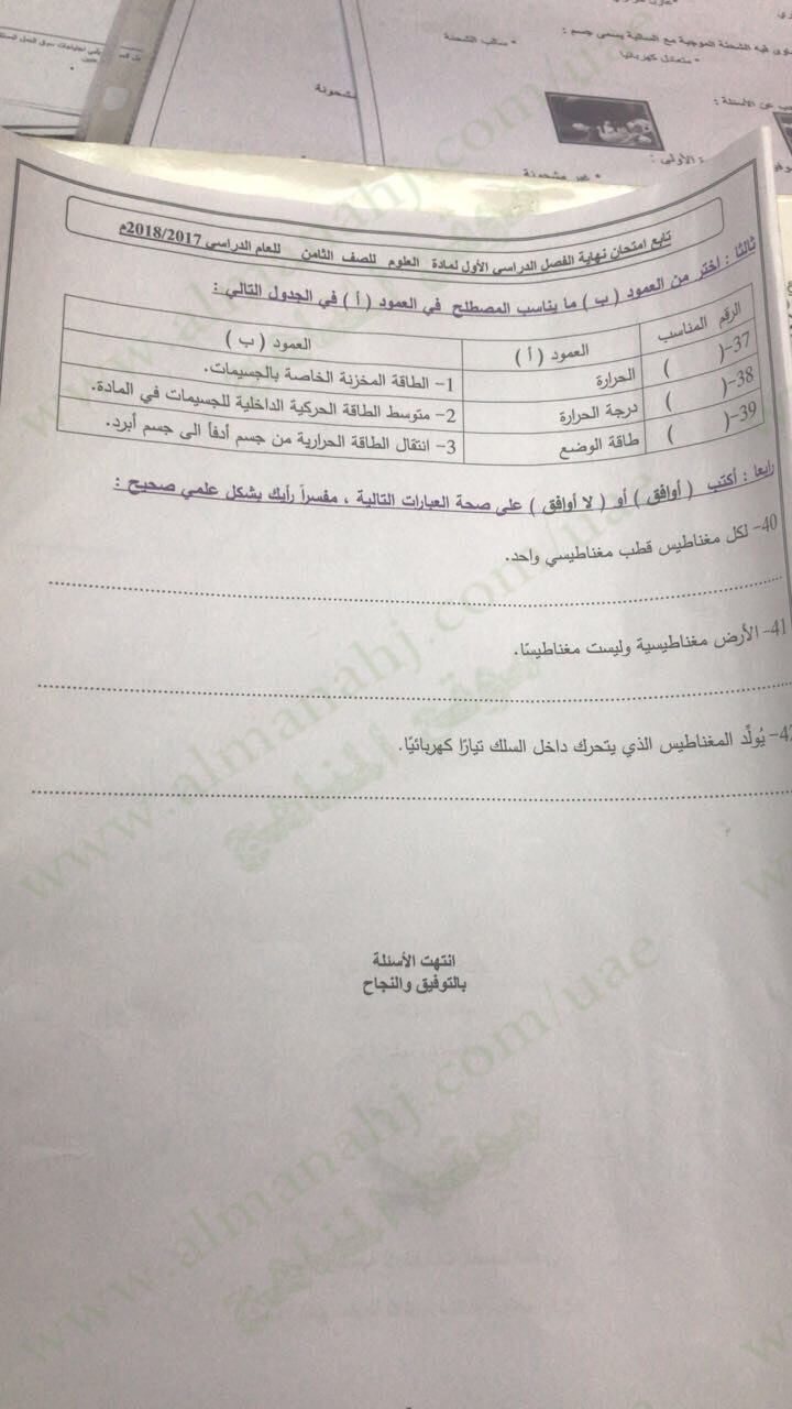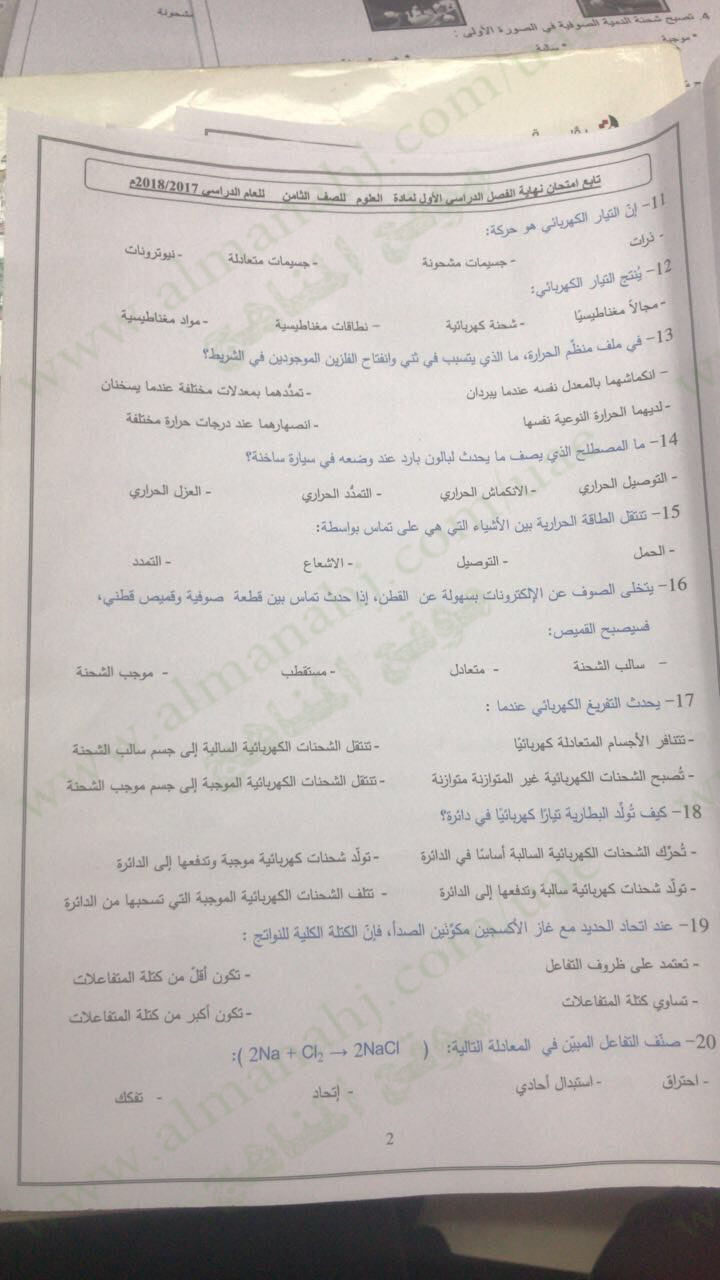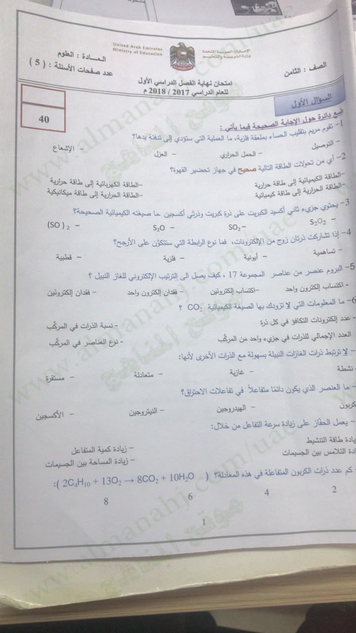 معلومات الملف: الصف الثامن, الفصل الأول, علوم, 2017-2018, الأسئلة الوزارية لامتحان نهاية الفصل الأول | |||