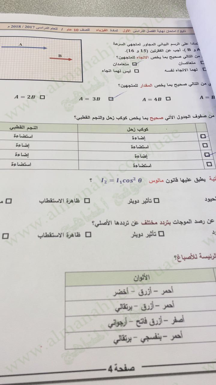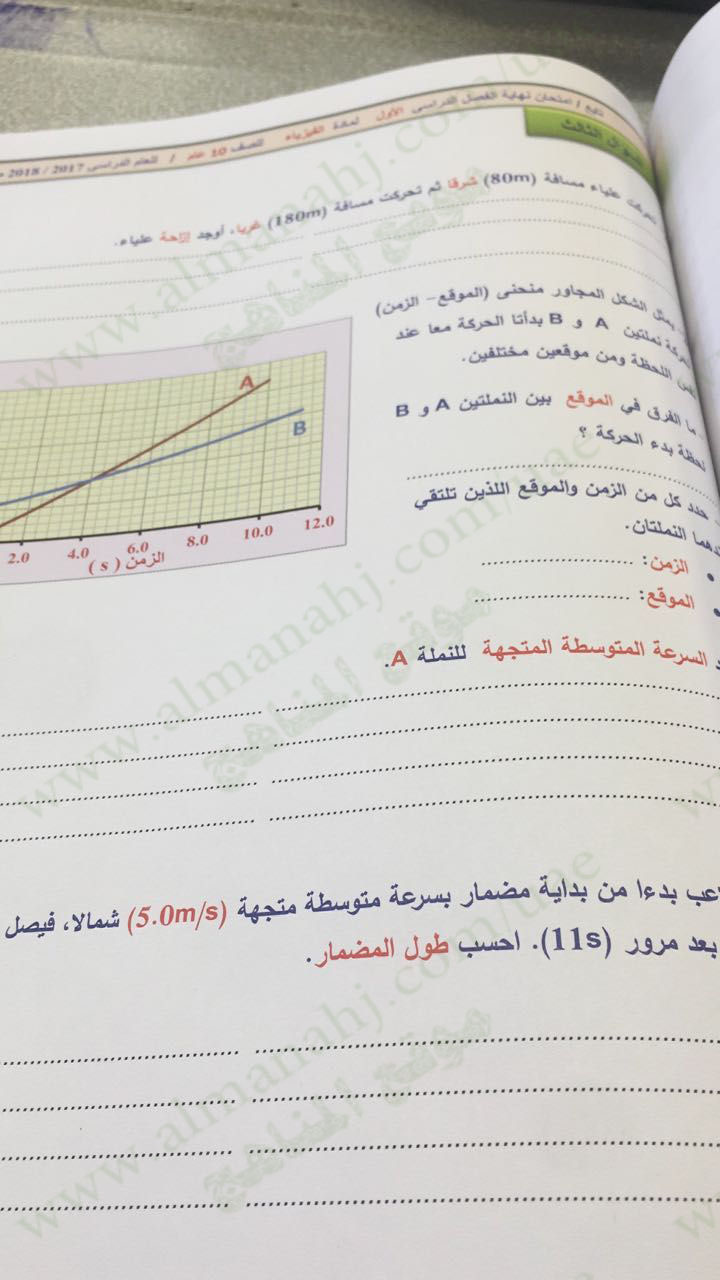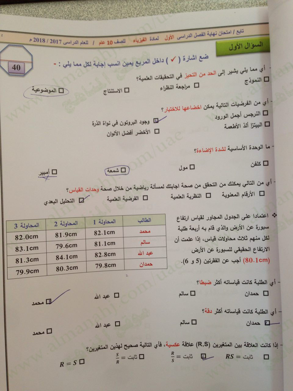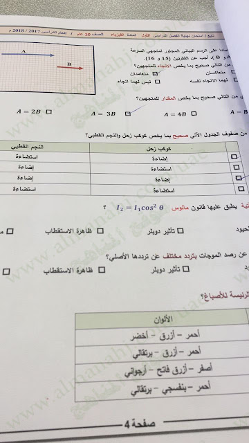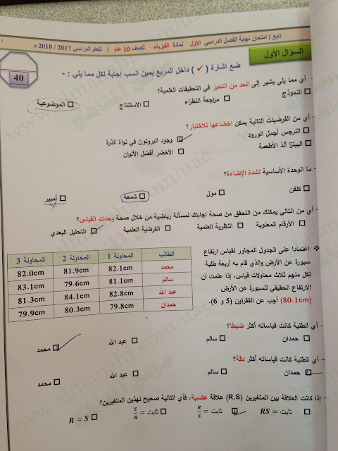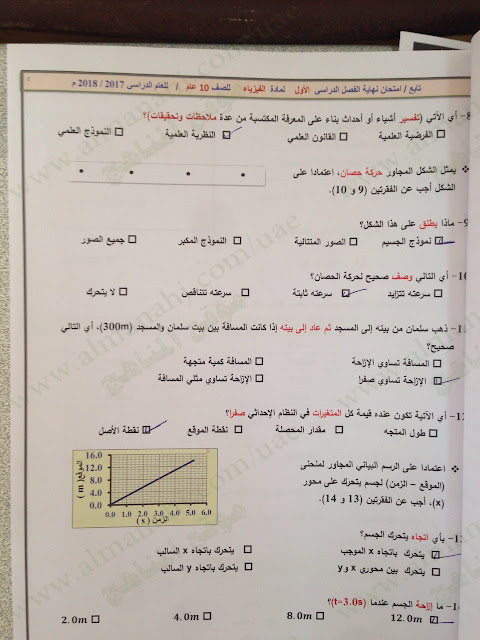 الصف العاشر العام, الفصل الأول, فيزياء, 2017-2018, الأسئلة الوزارية لامتحان نهاية الفصل الاول