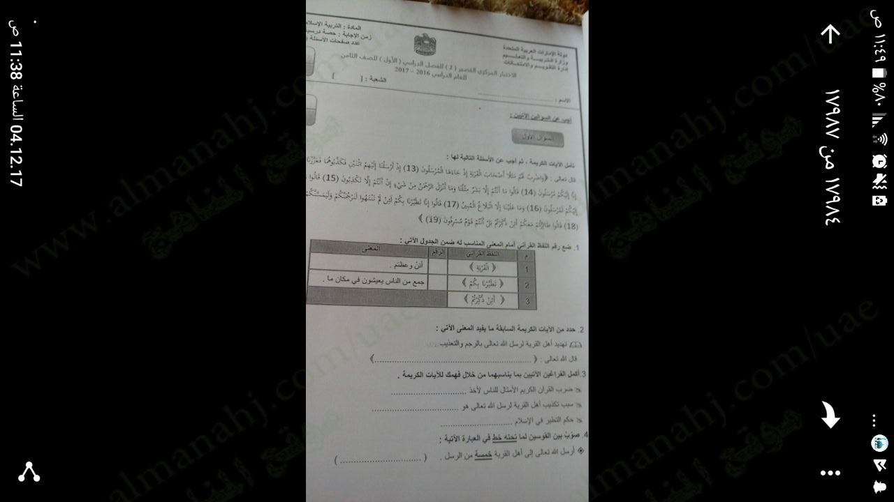 أنت هنا: موقع المناهجالمناهج الإماراتية الصف الثامن تربية اسلامية الفصل الأول الامتحان النهائي