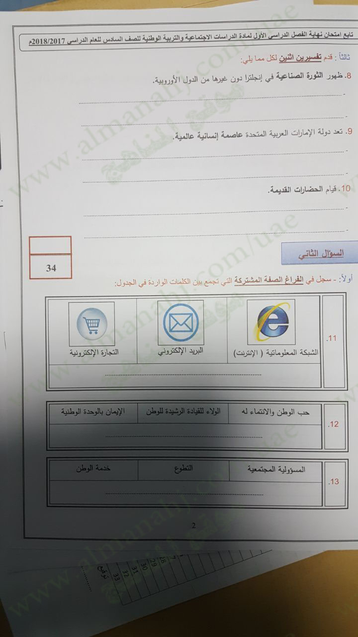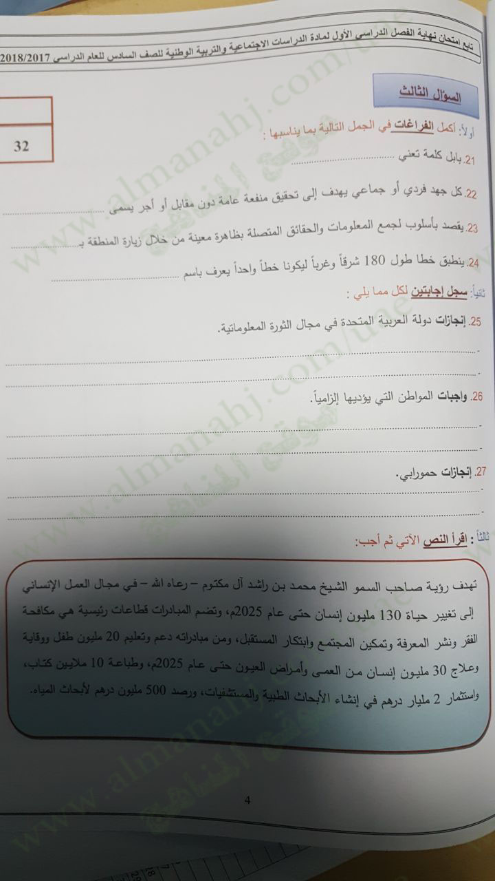 | أنت هنا: موقع المناهج ⇦ المناهج الإماراتية ⇦ الصف السادس ⇦ اجتماعيات ⇦ الفصل الأول ⇦ الامتحان النهائي |
