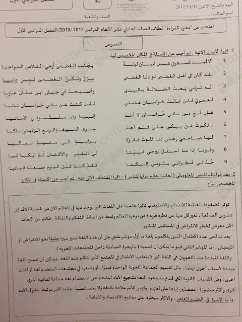 جميع الاختبارات التشخيصية المتوفرة في جميع المواد ولجميع الصفوف | |