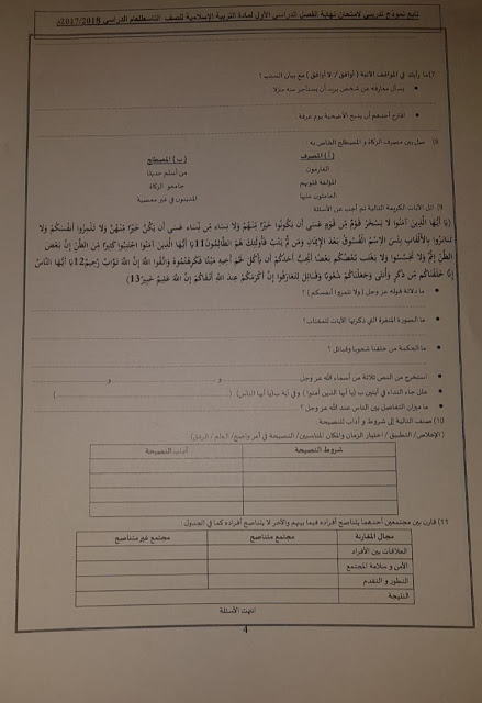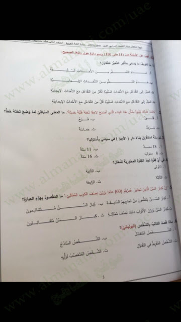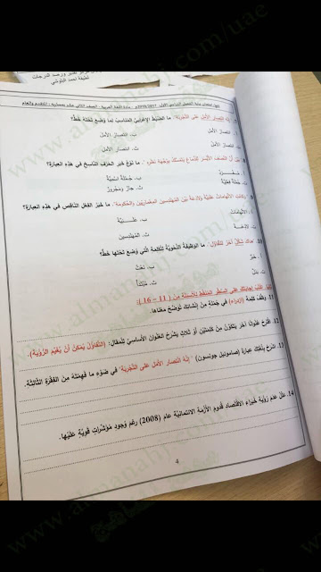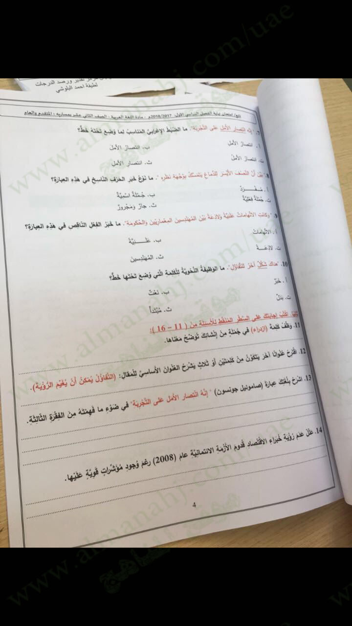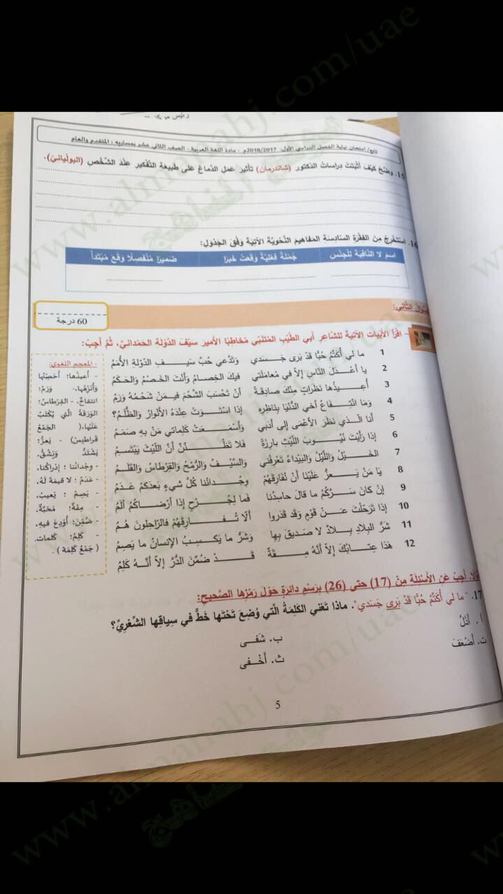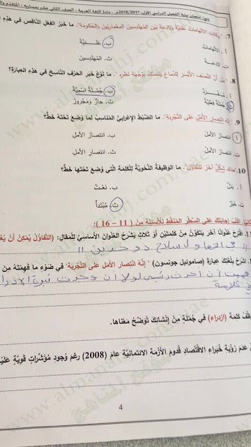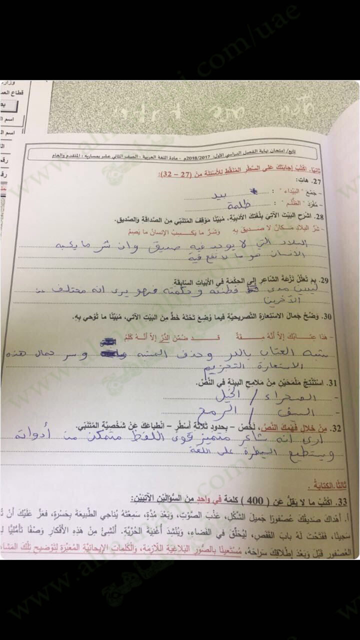 الصف الثاني عشر, الفصل الأول, لغة عربية, 2017-2018, الأسئلة الرسمية لامتحان نهاية الفصل الاول