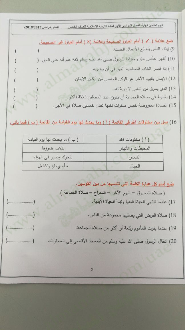 | أنت هنا: موقع المناهج ⇦ المناهج الإماراتية ⇦ الصف الخامس ⇦ تربية اسلامية ⇦ الفصل الأول ⇦ الامتحان النهائي |