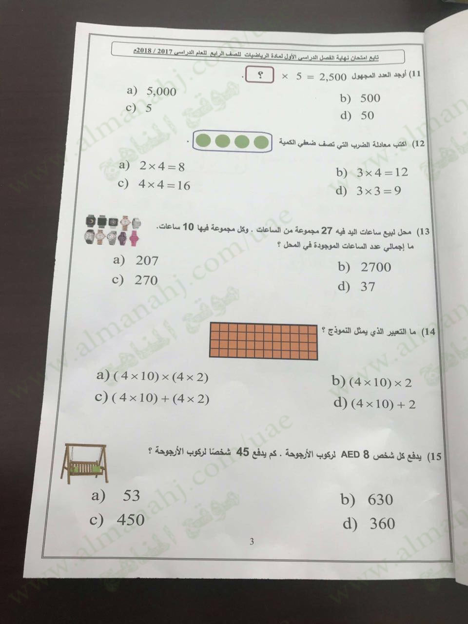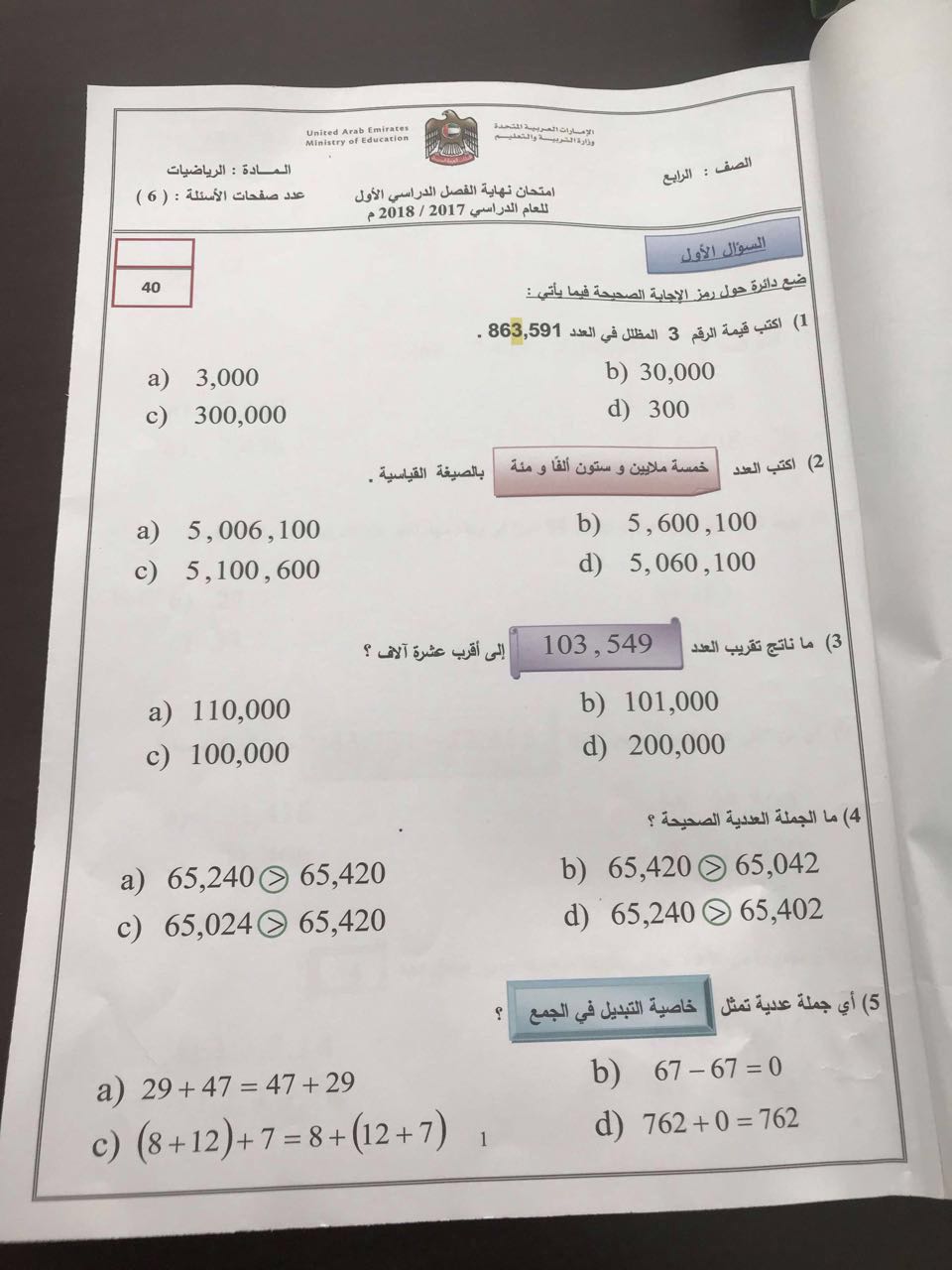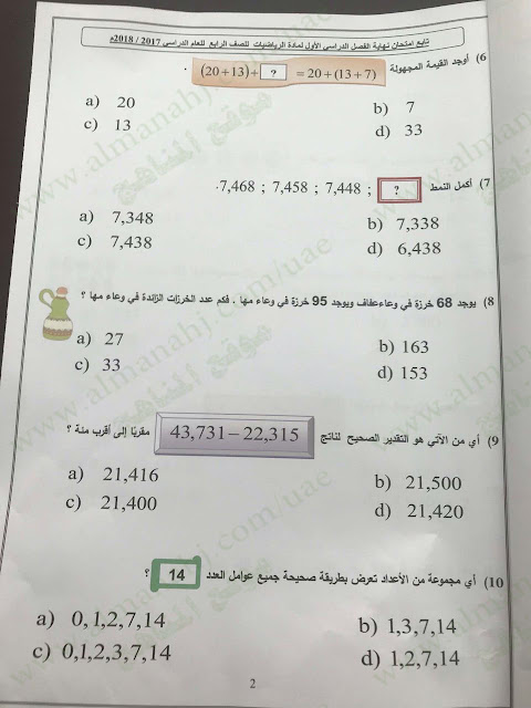 | أنت هنا: موقع المناهج ⇦ المناهج الإماراتية ⇦ الصف الرابع ⇦ رياضيات ⇦ الفصل الأول ⇦ الامتحان النهائي |