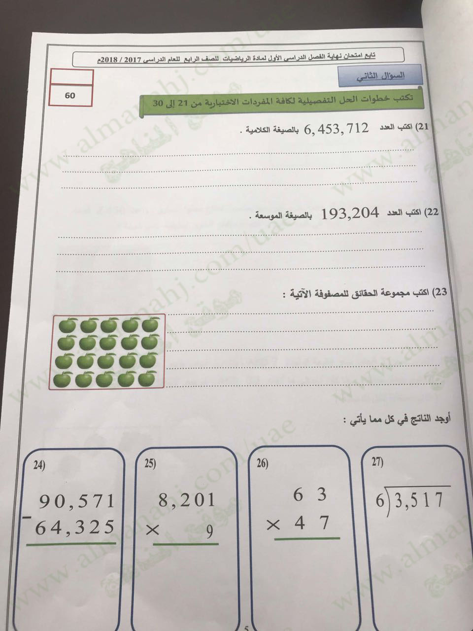 معلومات الملف: الصف الرابع, الفصل الأول, رياضيات, 2017-2018, الاسئلة الوزارية لامتحان نهاية الفصل الأول | |||