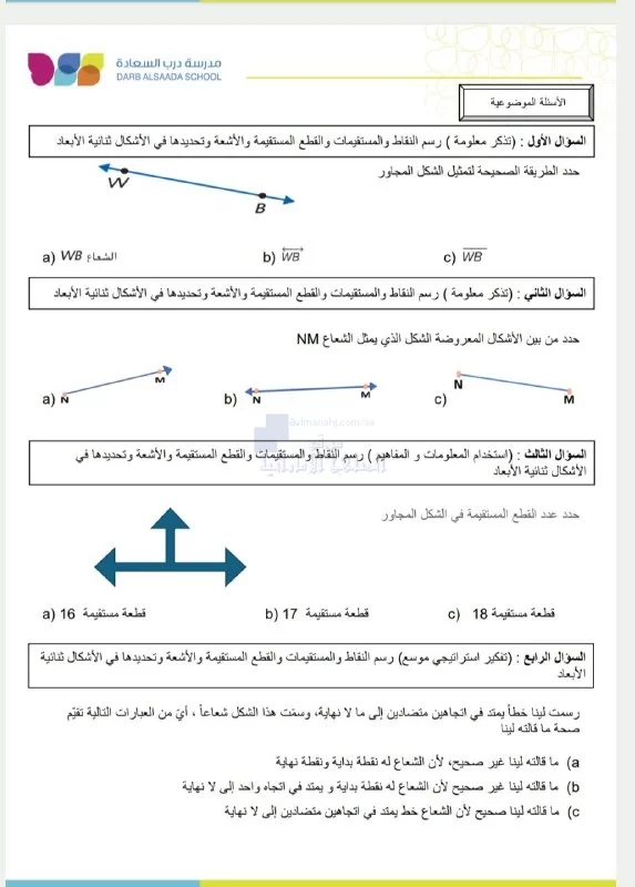 نموذج تدريبي للاختبار النهائي وفق الهيكل الوزاري - إعداد: مدرسة درب السعادة | ||