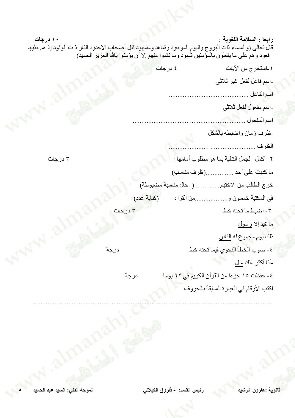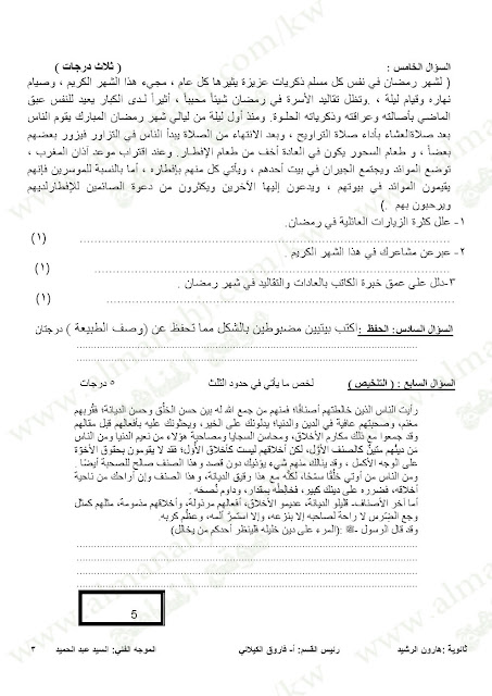الحادي الفترة الأولى الأحمدي امتحان نهاية الفترة الاولى | |||