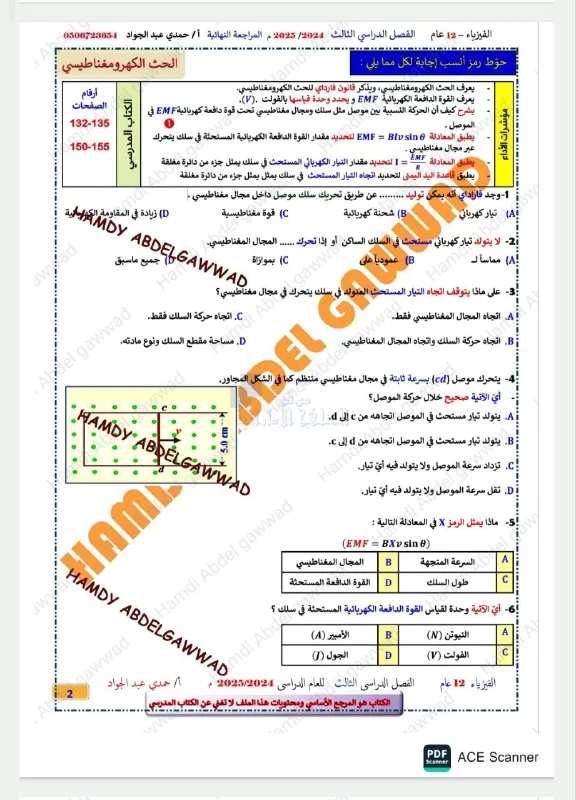 المراجعة النهائية وحدة الحث الكهرومغناطيسي بدون الحل وفق الهيكل الوزاري - إعداد: حمدي عبد الجواد | |||