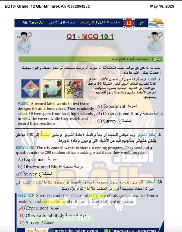 حل مراجعة امتحانية وفق الهيكل الوزاري باللغة الانجليزية - إعداد: طارق علي | |||