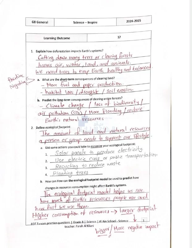 حل أسئلة الامتحان النهائي القسم الورقي منهج انسباير - نسخة تجريبية, الصف الثامن, علوم, الفصل الثالث, 2024-2025, منهج انجليزي - المناهج الإماراتية