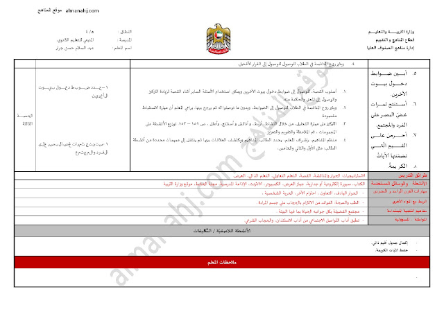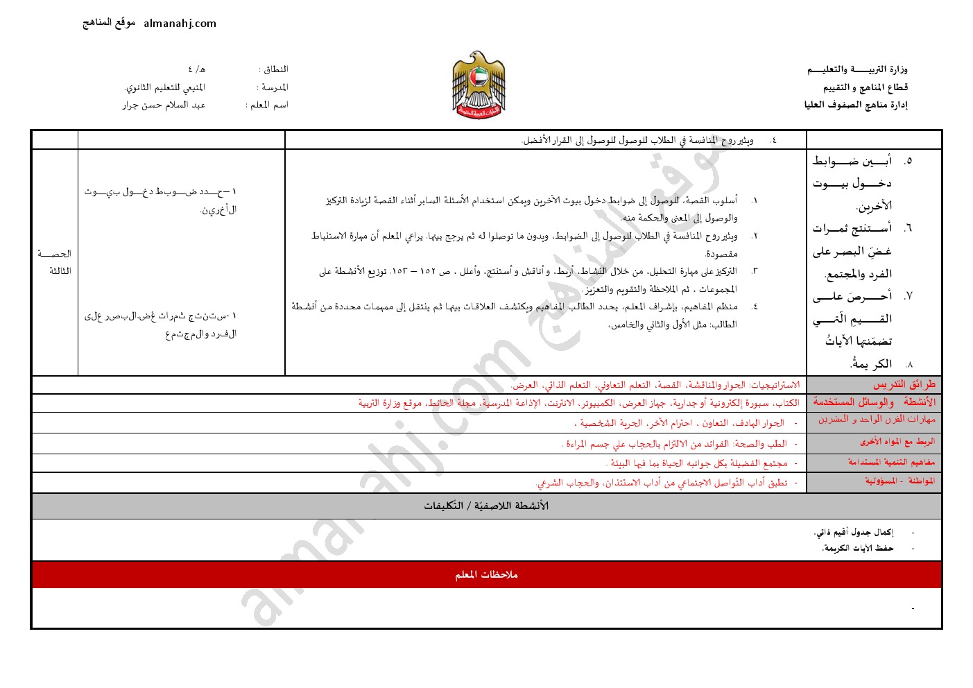 الملاحظات المثبتة في المناهج الإماراتية | |