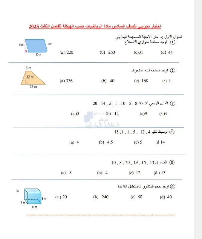 تم إيجاد الملف: تدريبات اختبار تجرببي وفق الهيكل الوزاري بدون الحل