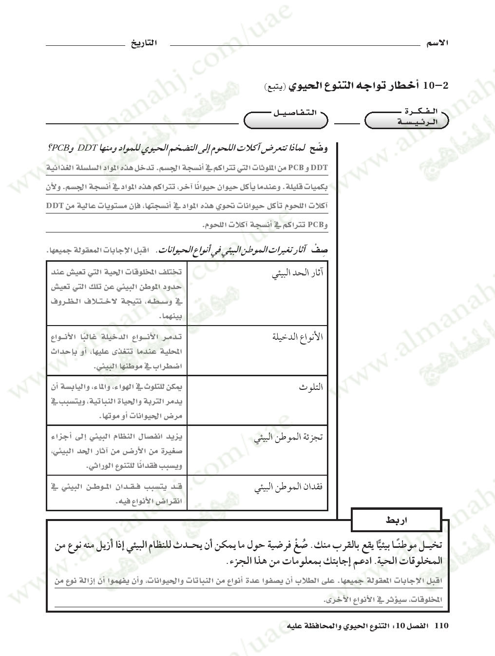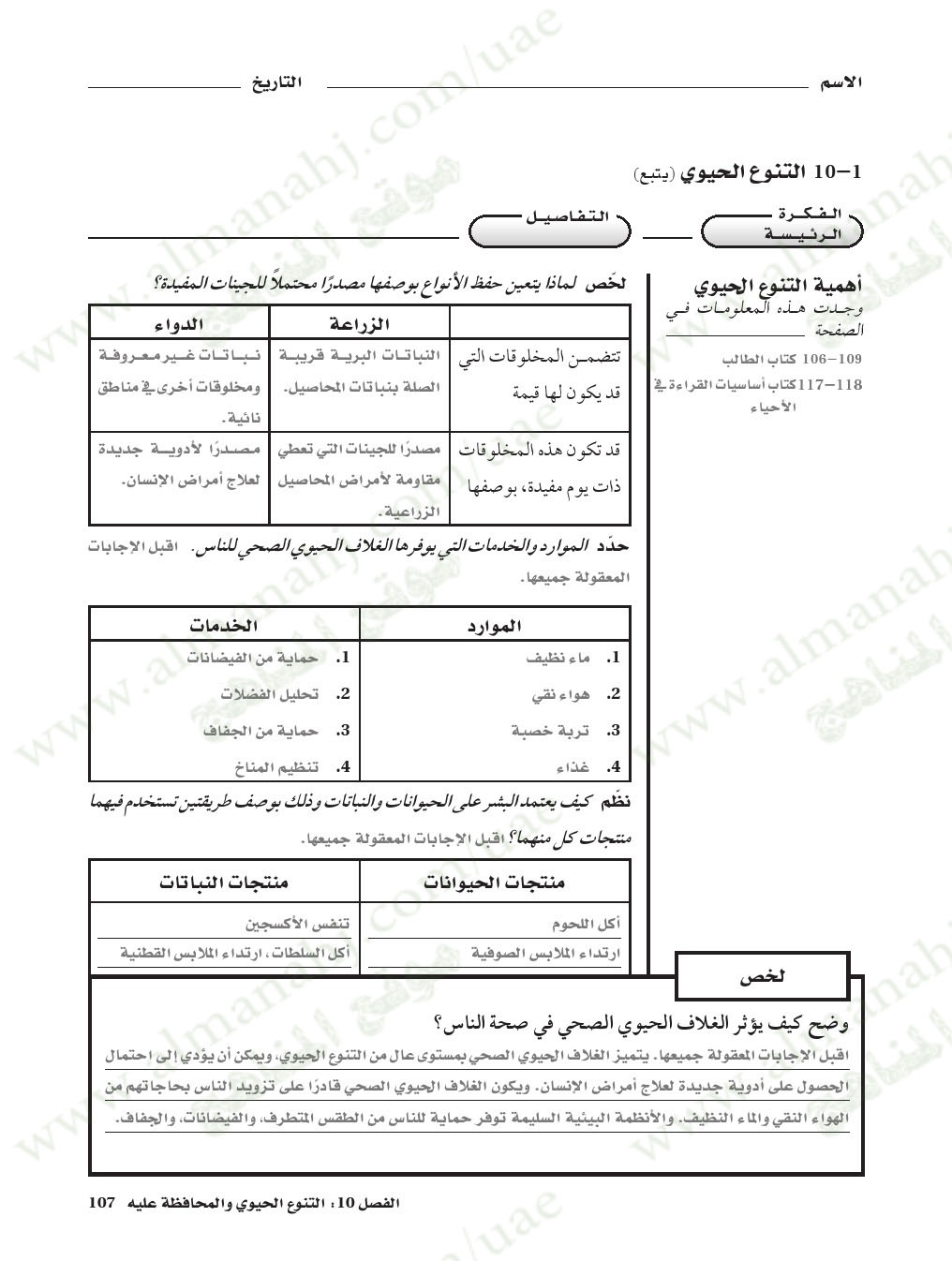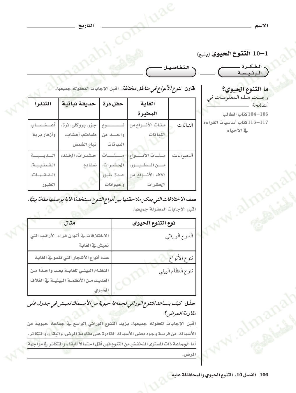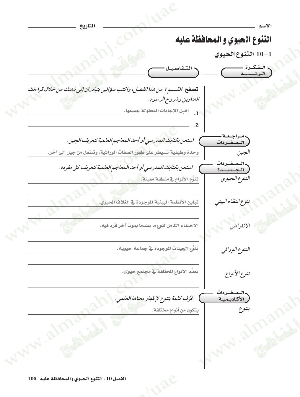 1. احياء ملخص وحدة التنوع الاحيائي والمحافظة عليه