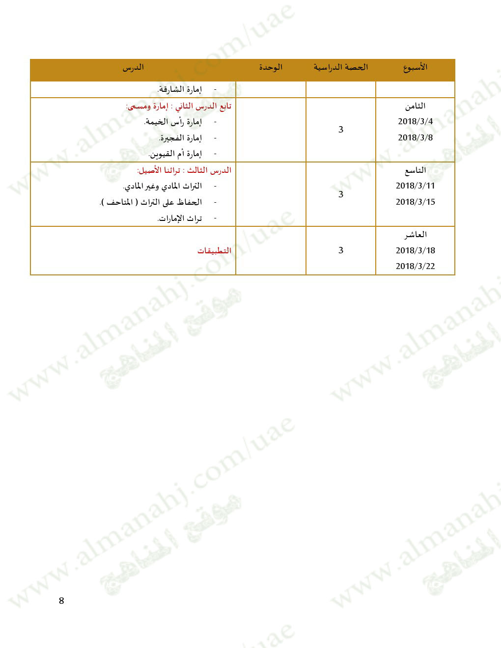 | الملاحظات المثبتة في المناهج الإماراتية | |