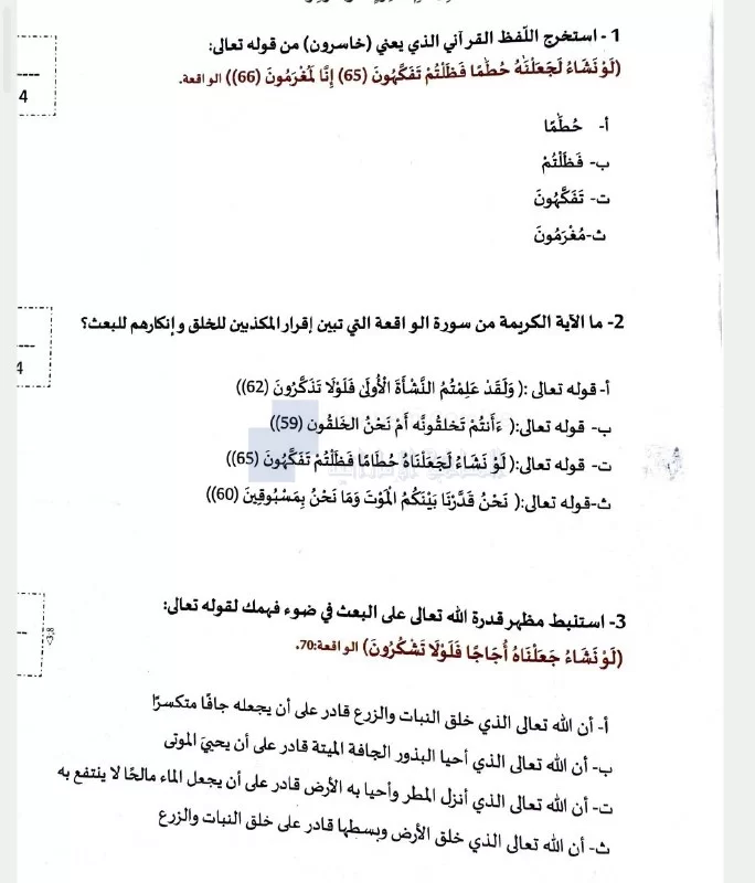 أسئلة الامتحان النهائي القسم الورقي كافة المسارات | ||