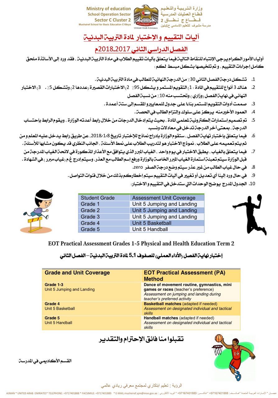 | تعميم بخصوص مادة التربية البدنية للفصل الثاني من للصفوف من الاول وحتى الخامس | ||