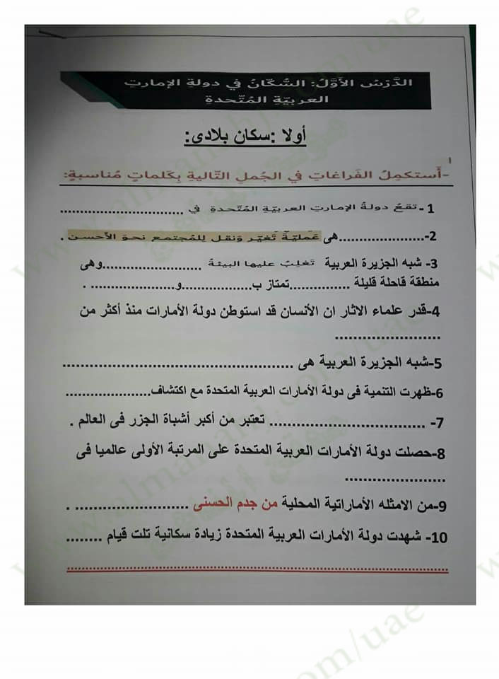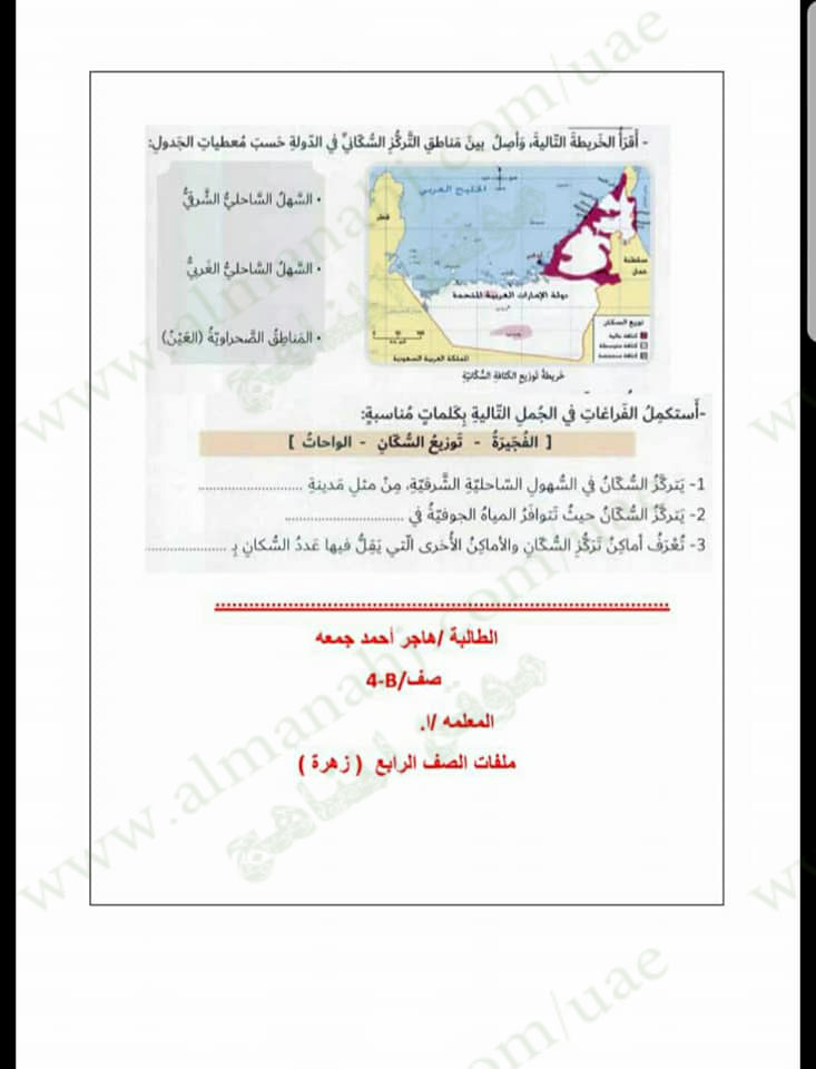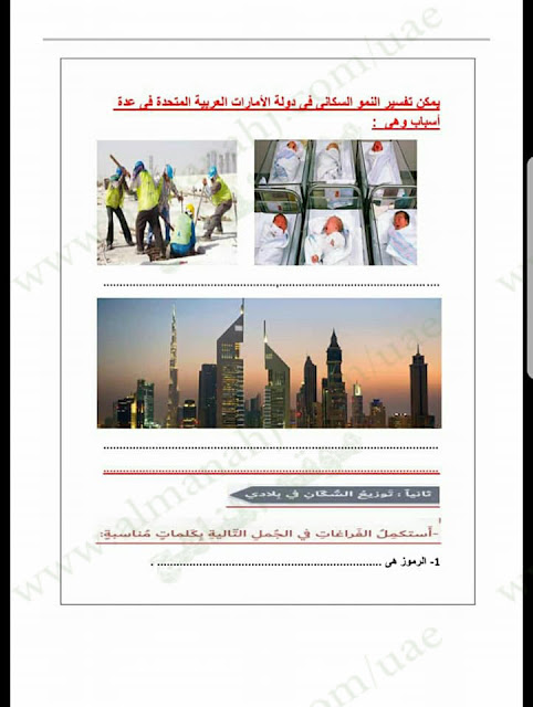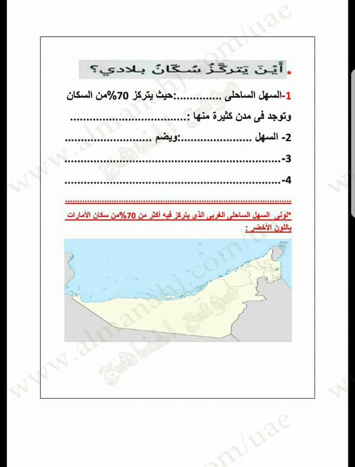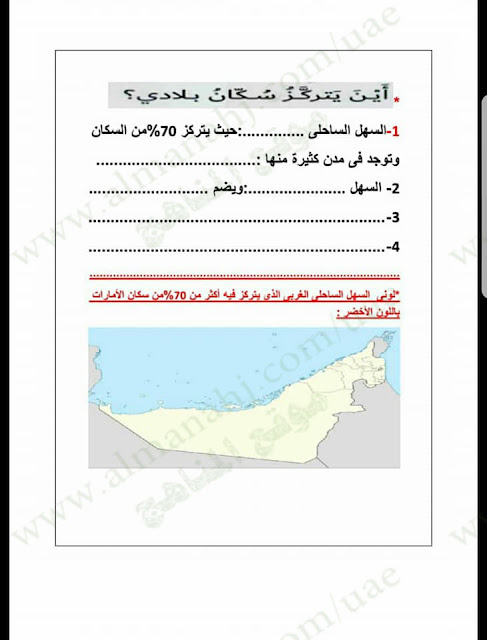 الصف الرابع, الفصل الثاني, اجتماعيات, 2017-2018, أوراق عمل سكان بلادي