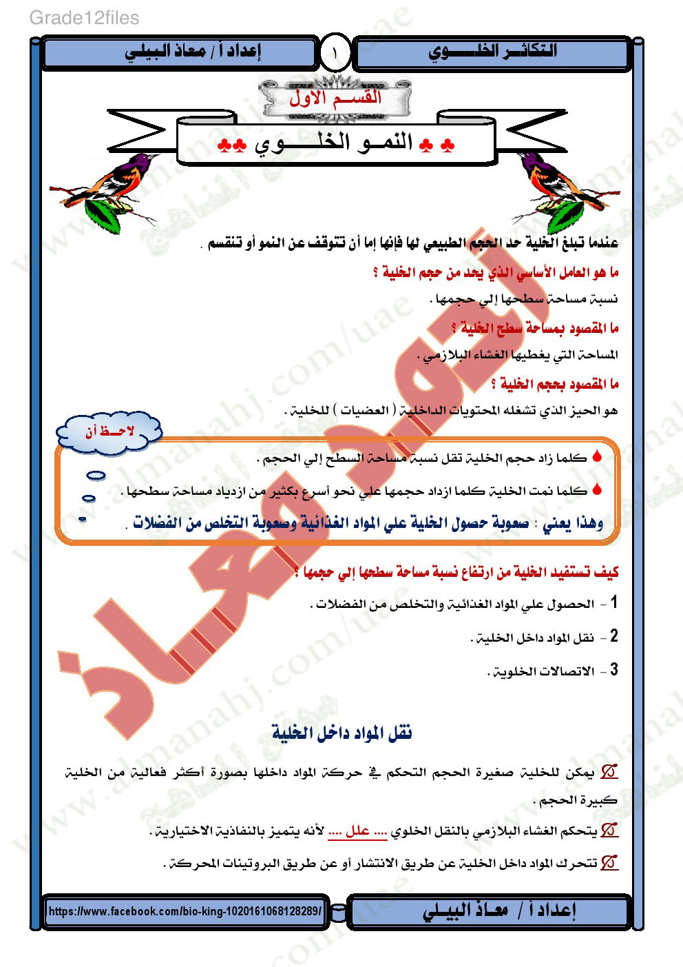معلومات الملف: الصف الثاني عشر المتقدم, الفصل الثاني, علوم, 2017-2018, تلخيص أحياء - التكاثر الخلوي | |||