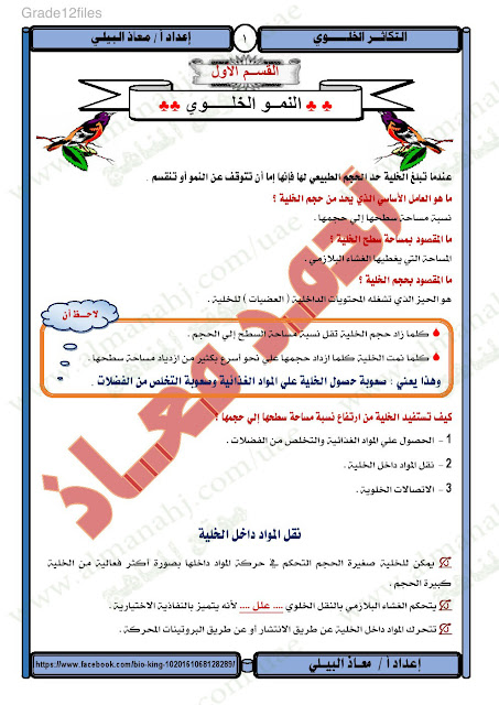 | اضغط هنا لتحميل وعرض ( تلخيص أحياء التكاثر الخلوي ) | |||