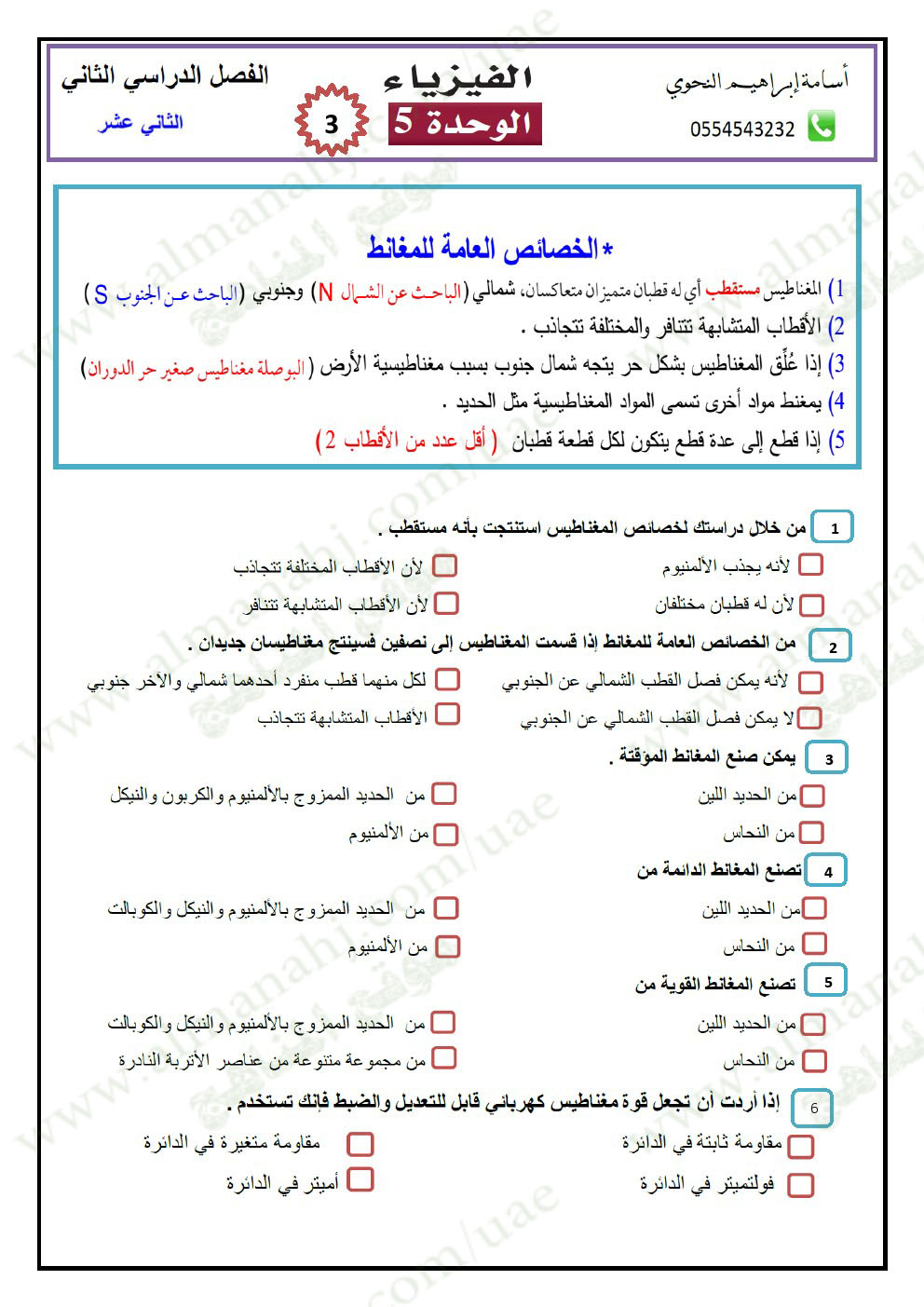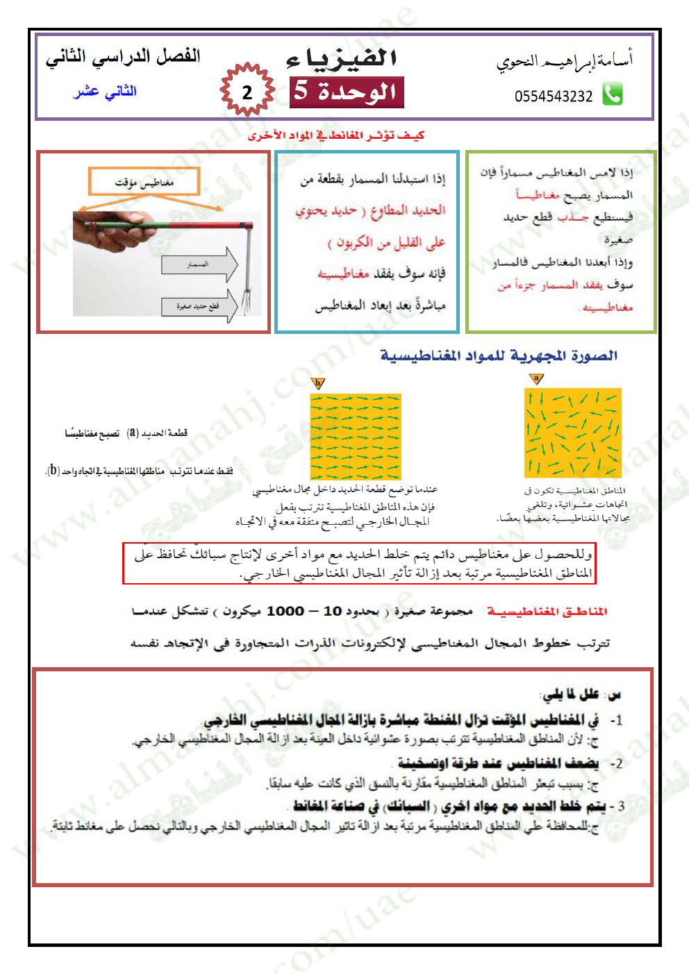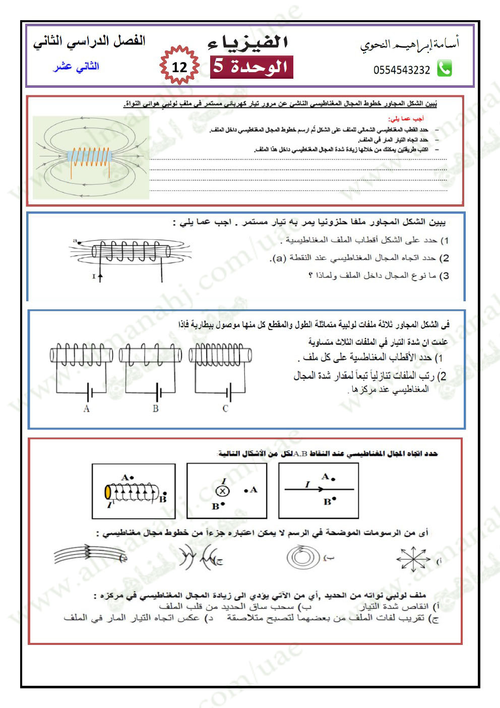 معلومات الملف: الصف الثاني عشر المتقدم, الفصل الثاني, فيزياء, 2017-2018, أوراق عمل المغناطيسية | ||