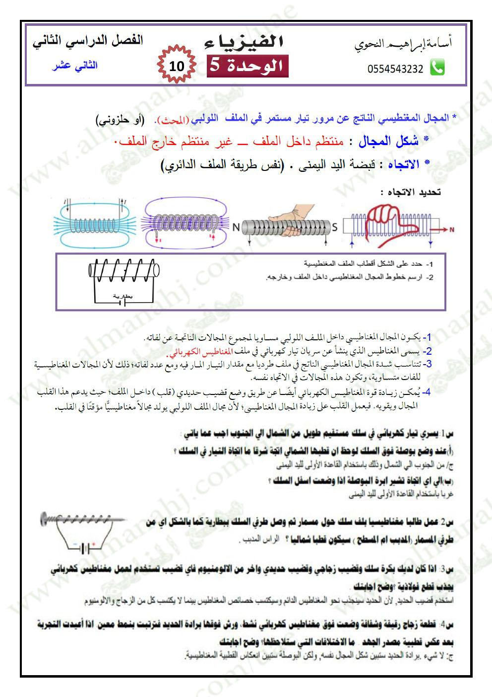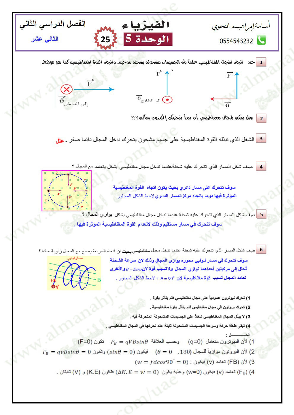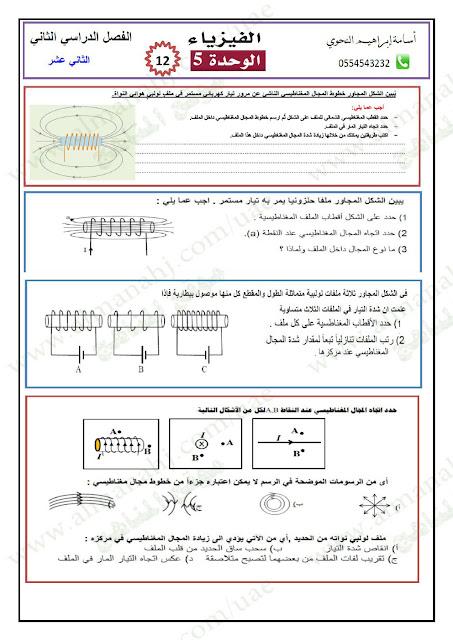 الصف الثاني عشر المتقدم, الفصل الثاني, فيزياء, 2017-2018, أوراق عمل المغناطيسية للتحميل اتبع الرابط التالي: https://drive.google.com/open?id=1Ij6U2Iz4tU0NYRqXKCqNDdC7bjNG4IgX