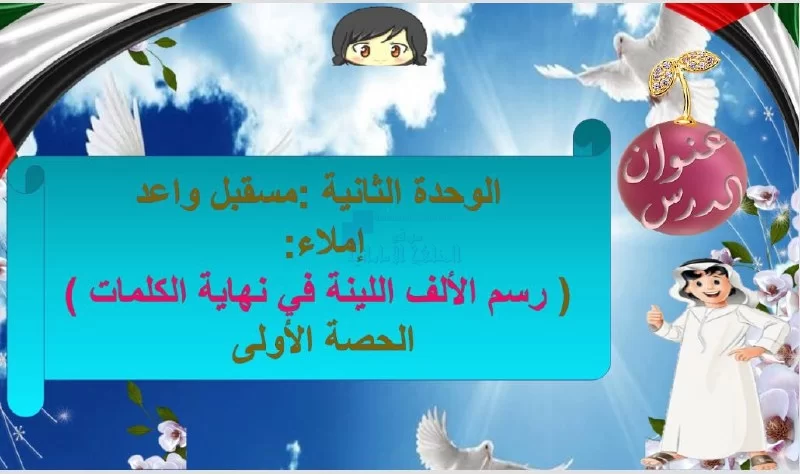 معلومات الملف: عرض بوربوينت درس رسم الألف اللينة في نهاية الكلمات من الوحدة الثانية : مستقبل واعد | |||