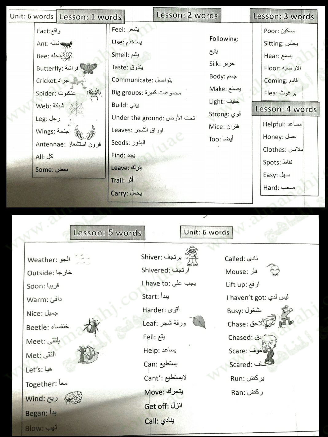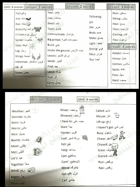 الصف الثالث, الفصل الثاني, لغة انكليزية, 2017-2018, مفردات الوحدة السادسة لتحميل الصورة بجودة اكبر اضغط عليها ثم حملها..