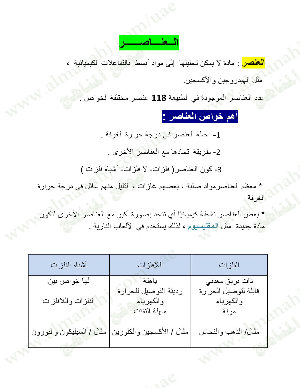 | ملخص خواص المادة والعناصر ( ملف من 10 صفحات ) | ||