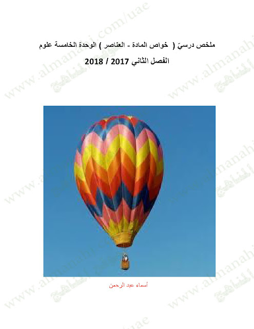 معلومات الملف: الصف الخامس, الفصل الثاني, علوم, 2017-2018, ملخص خواص المادة والعناصر ( ملف من 10 صفحات ) | ||