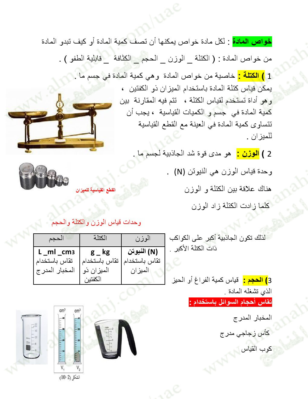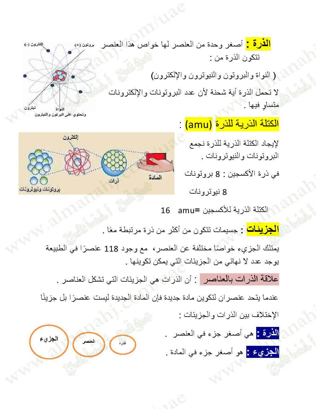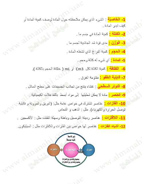 ملخص خواص المادة والعناصر ( ملف من 10 صفحات ) | ||