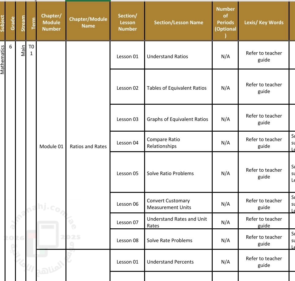 4. الصف السادس, رياضيات, مذكرة الاختبارات الوطنية من المدرسة الأهلية الخيرية
