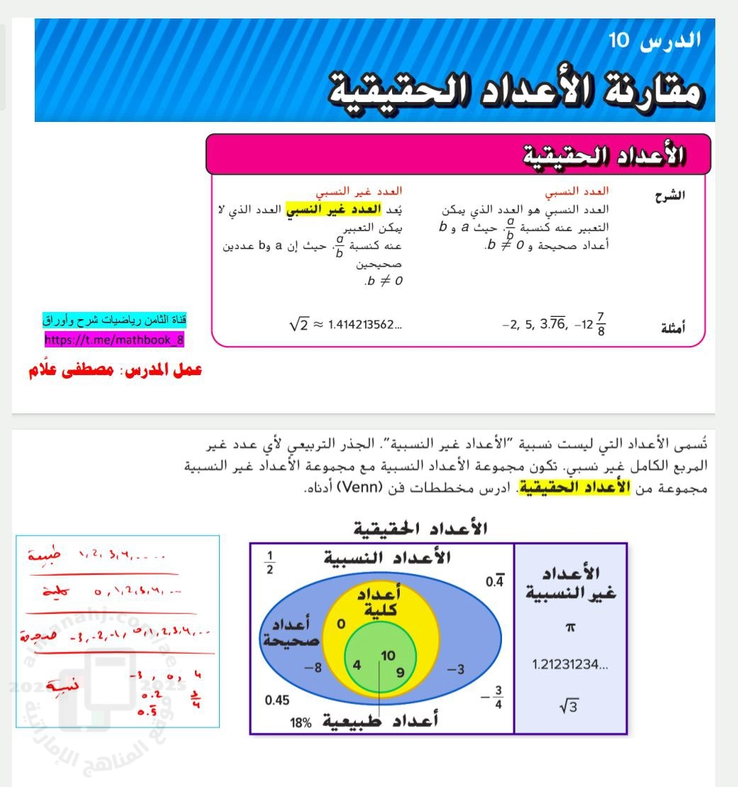يتم الآن تحضير الملف ( حل أسئلة الدرس العاشر مقارنة الأعداد الحقيقية من الوحدة الأولى) من أجل التحميل