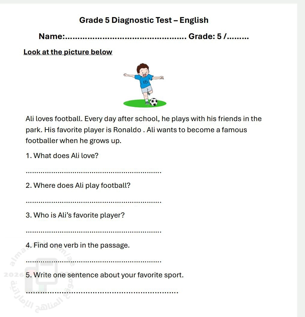 تم إيجاد الملف: أسئلة اختبار تشخيصي Diagnostic Test بدون الحل