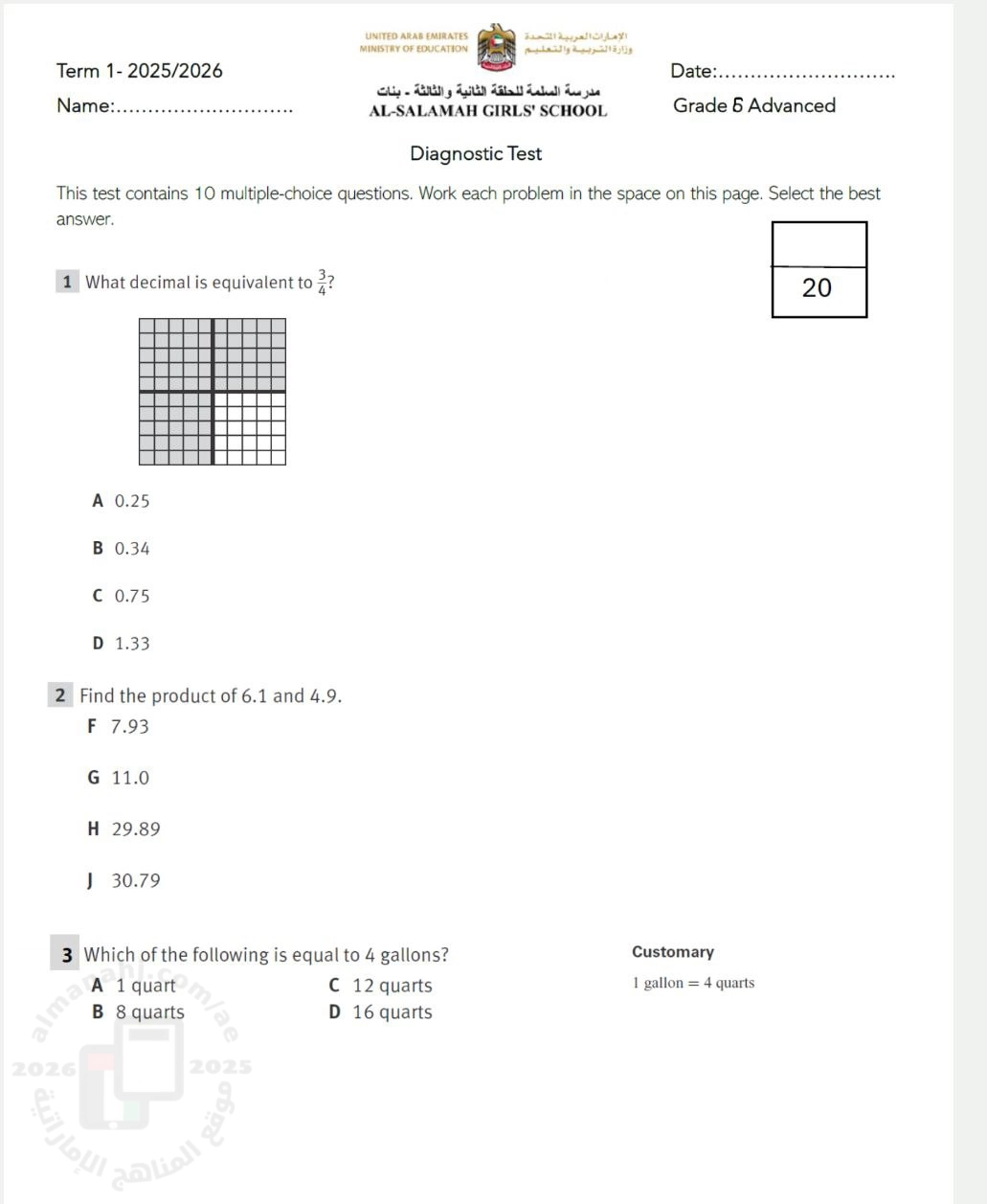 11. الصف الخامس, لغة عربية, تدريب على مهارات الاختبار التكويني
