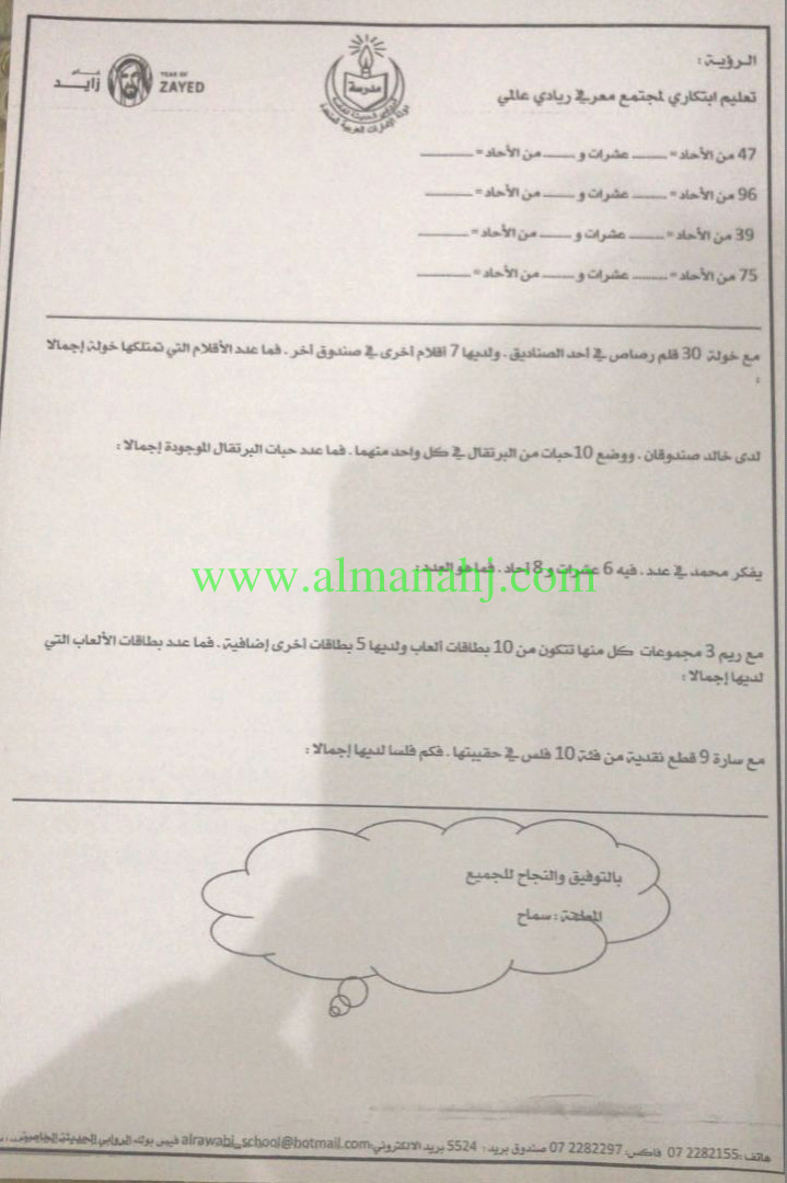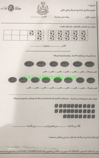 الصف الأول, الفصل الثاني, رياضيات, 2017-2018, ورقة عمل للتحميل اتبع الرابط التالي: http://aefiles.website/do.php?id=1005">http://aefiles.website/do.php?id=1005