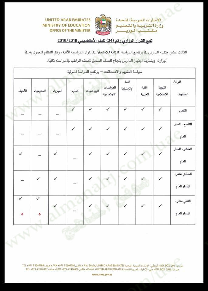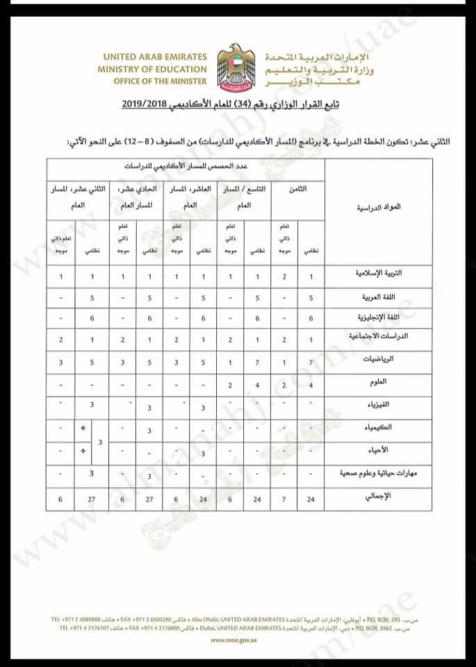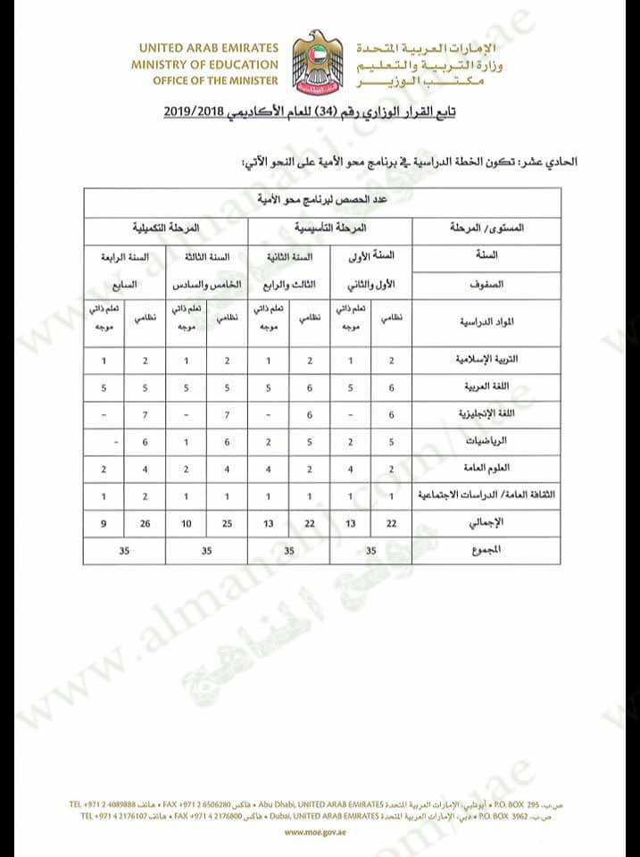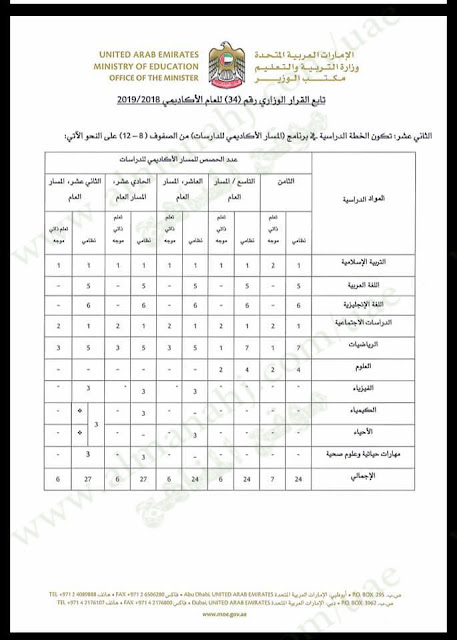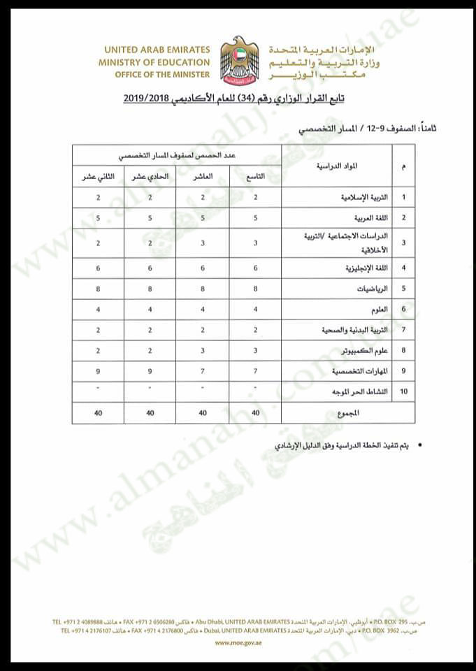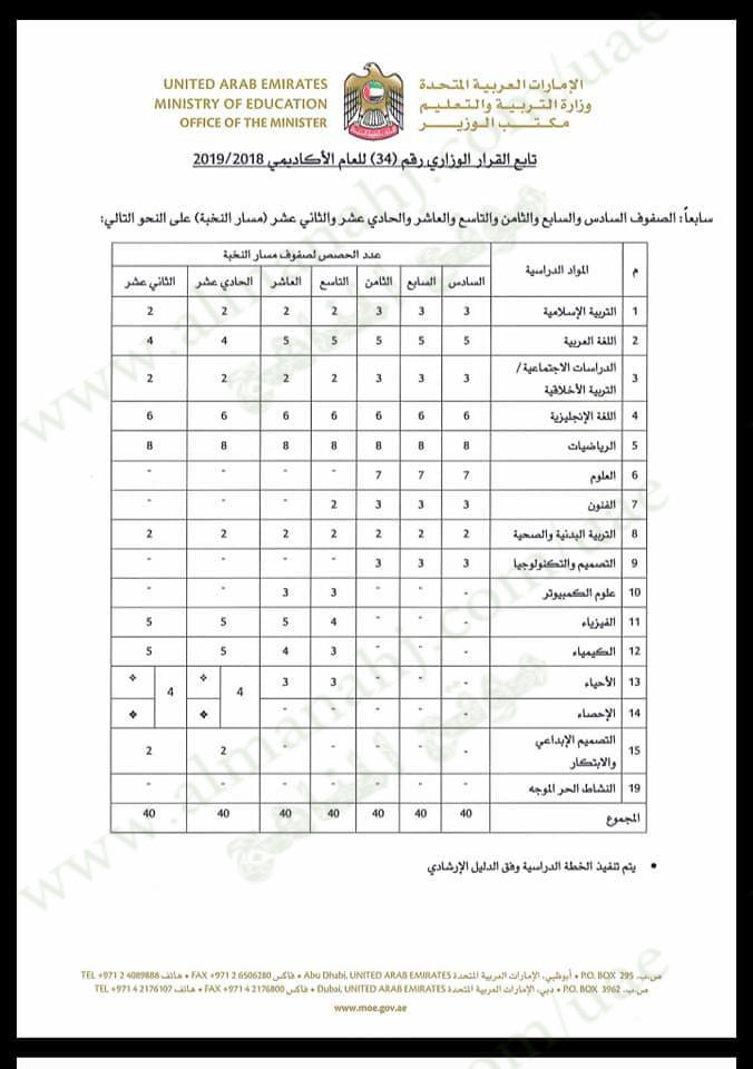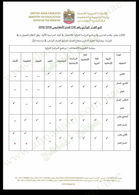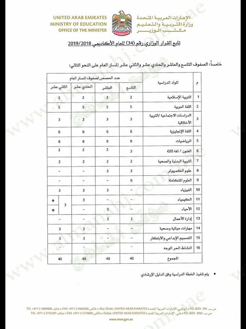 الملاحظات المثبتة في المناهج الإماراتية | |